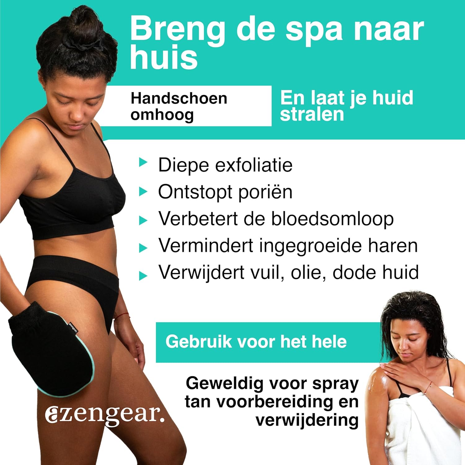 Zachte maar Diepe Exfoliatie: Gemaakt van 100% natuurlijke viscose plantvezels, is de aZengear exfoliërende handschoen zacht voor de huid maar krachtig genoeg om vuil, olie en dode huidcellen te verwijderen. Geen irriterende, harde scrubs meer! Ervaar een opmerkelijke transformatie in de textuur van je huid. Onze douchehandschoenen zorgen voor onmiddellijke, zichtbare resultaten, waardoor doffe, levenloze huid verandert in een levendige, stralende perfectie.