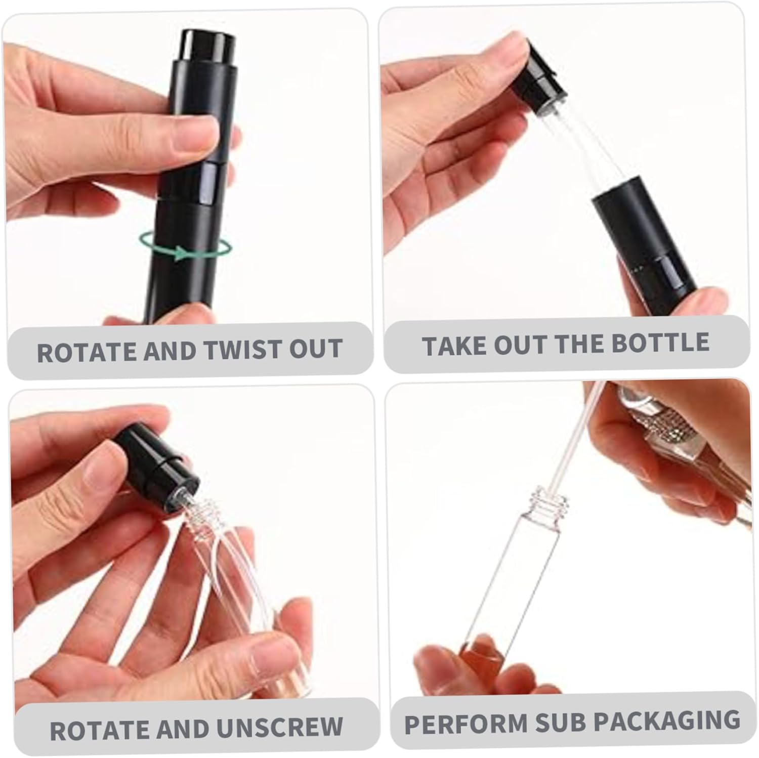 Reuse: Turn to open the nozzle cap of the mini perfume spray bottle, which can not only fill your favorite perfume, but also easily remove the remaining perfume from the last use, which is convenient to use and carry many times.