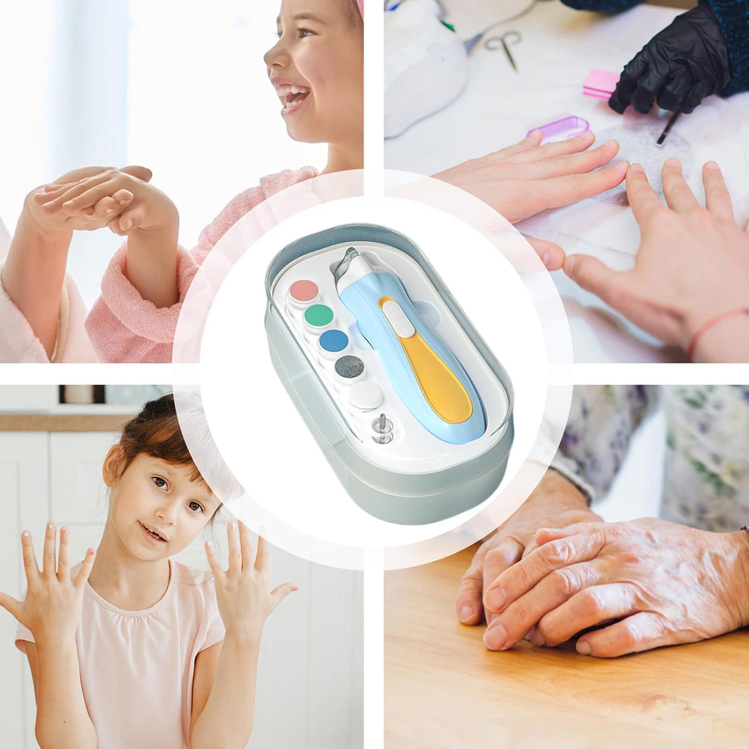 This Baby Nail Care Electric Clippers set features a rechargeable design with light and dust cover, ensuring safe and precise nail trimming for and children. The automatic nail file provides smooth finishing, while the ergonomic shape comfortable handling. Ideal for busy parents, this professional tool combines safety, efficiency, and convenience to keep little nails neat and healthy without fuss or discomfort.