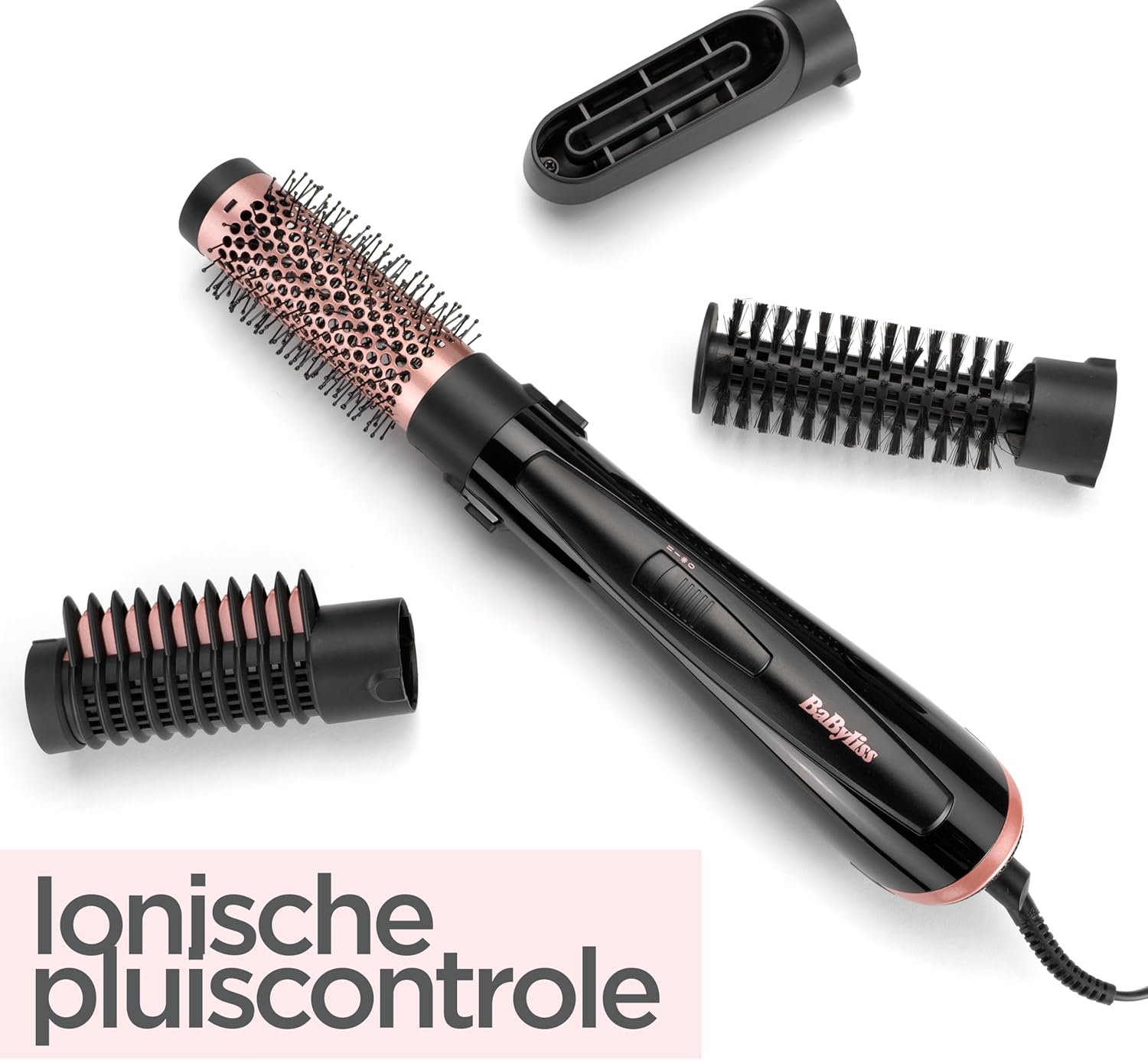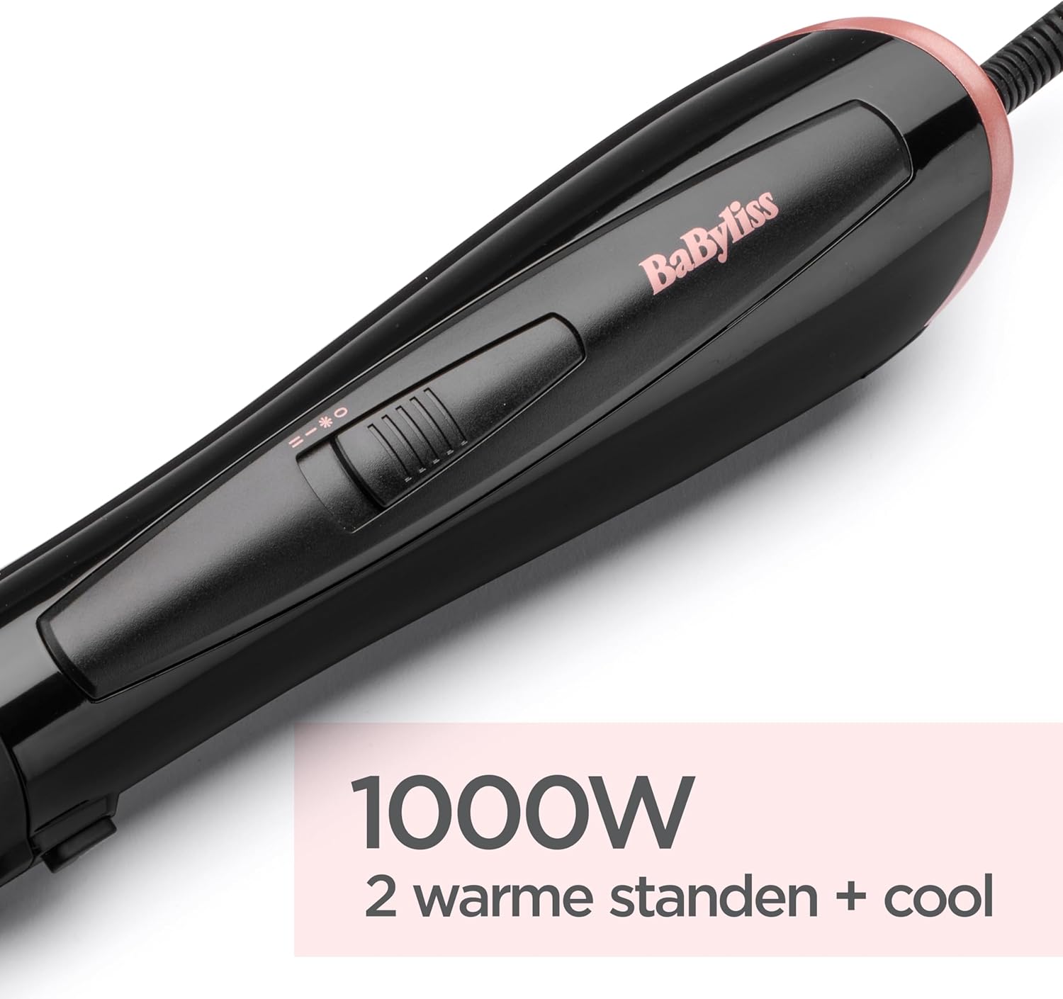 BaByliss 1000W Föhnborstel – Perfect Finish, 3 Opzetstukken voor Gladmaken, Volume & Vormgeven, 2 Warmte-instellingen + Cool Shot, Ionische Technologie voor Pluiscontrole – AS126E