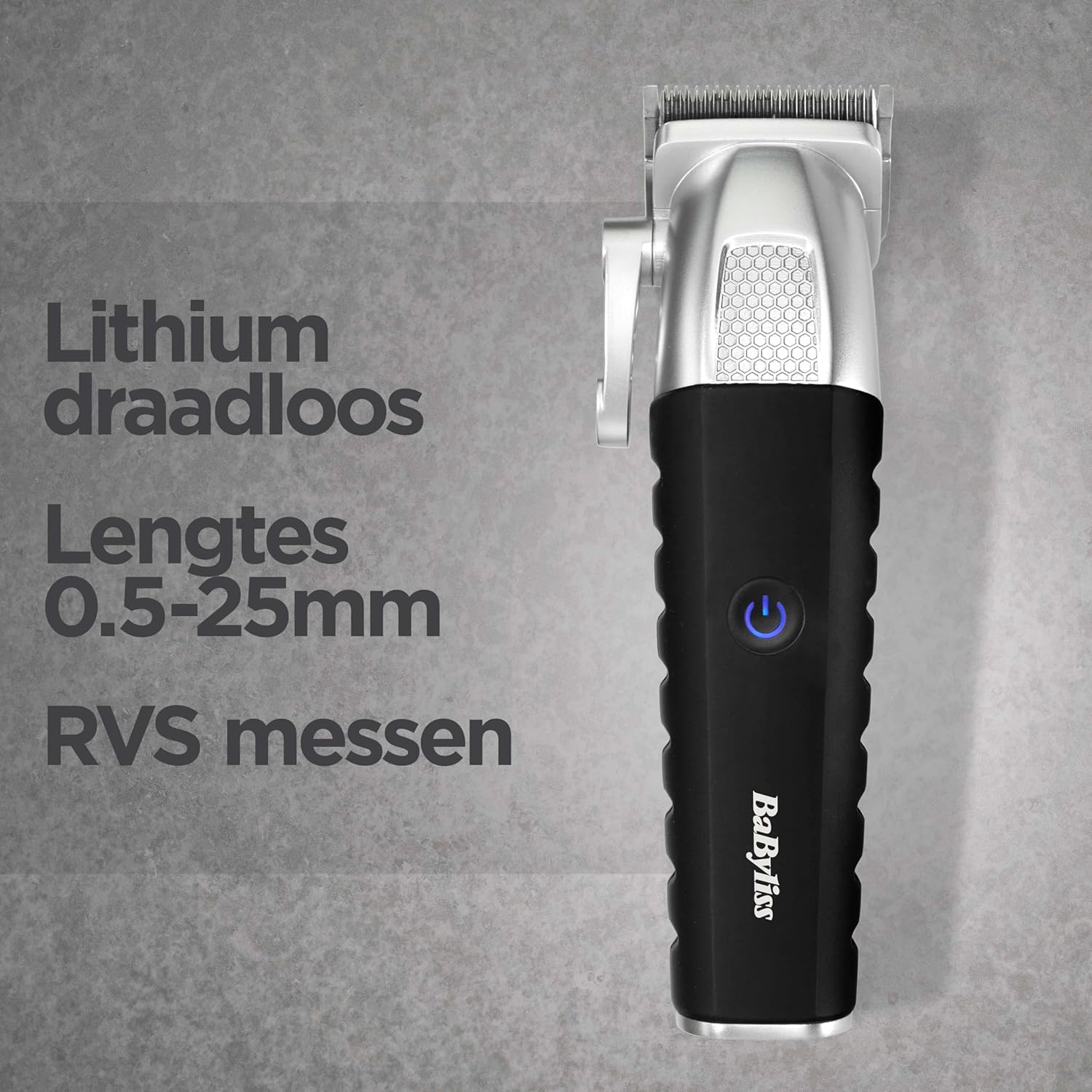 BaByliss Lithium Power Hair Clipper, Lithium Cordless, Quick Charge, Japanse stalen messen,