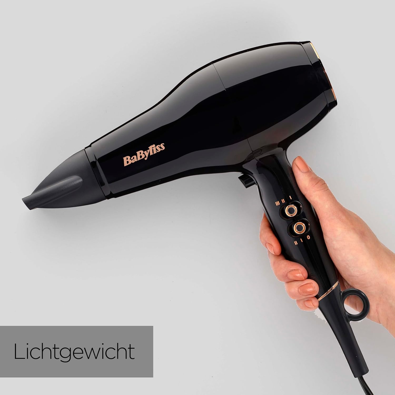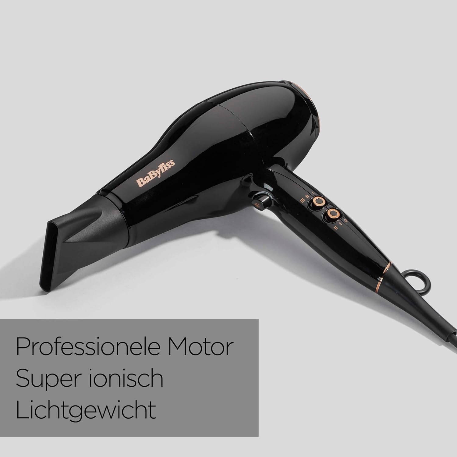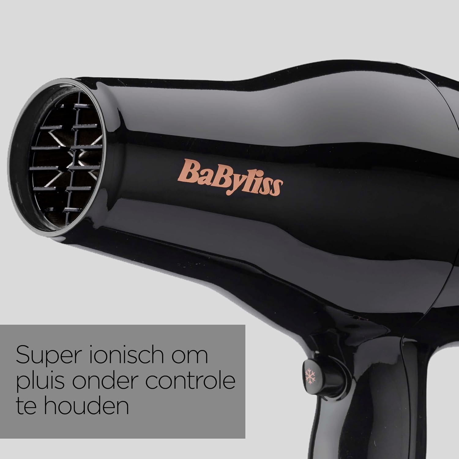 BaByliss Pro Power Haardroger – Krachtige 2300W Föhn, Professionele Salon AC Motor, Ionische Anti-Pluis Technologie, 3 Temperatuur- & 2 Snelheidsinstellingen, Zwart, D5245E