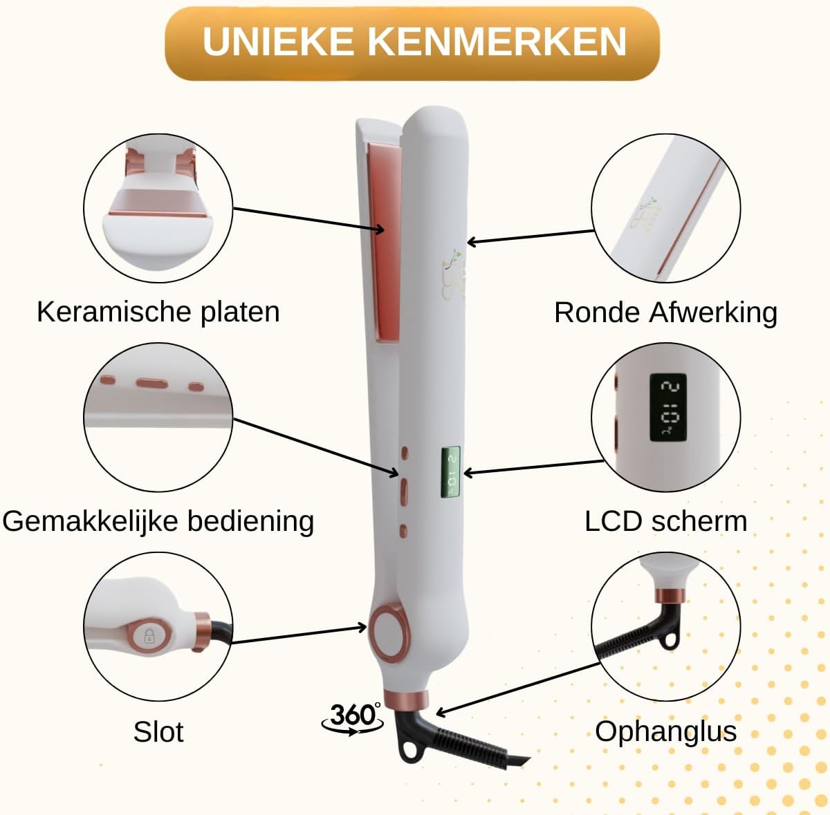 25 Temperatuurstanden: Instelbaar van 80°C tot 210°C, geschikt voor alle haartypen, van dun tot dik haar.
