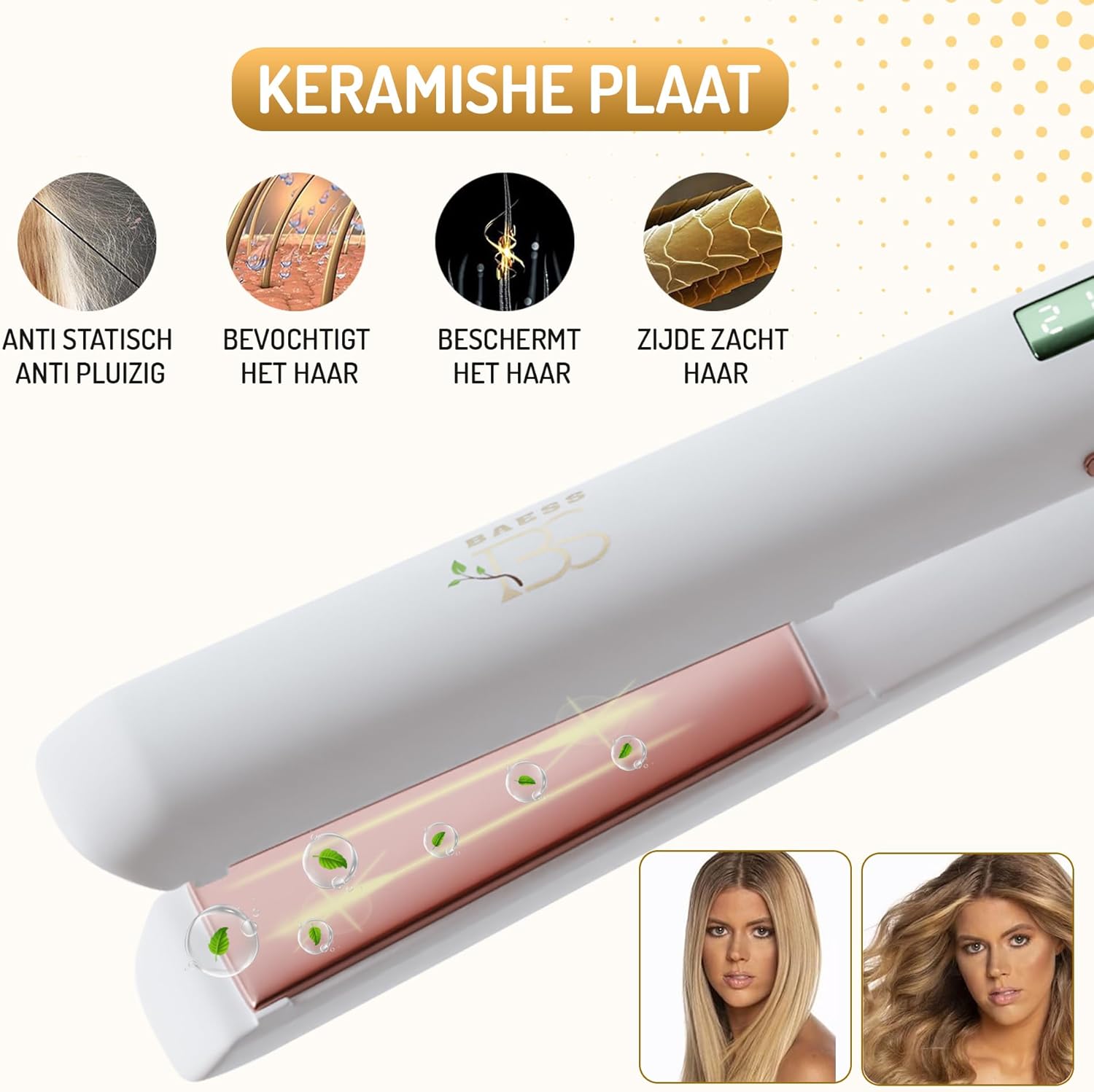 BAESS 2 in 1 Stijltang – Stijlen en krullen – Keramisch – Krultang – Hair Straightener – 25 standen – 80ºC – 210ºC (Wit)
