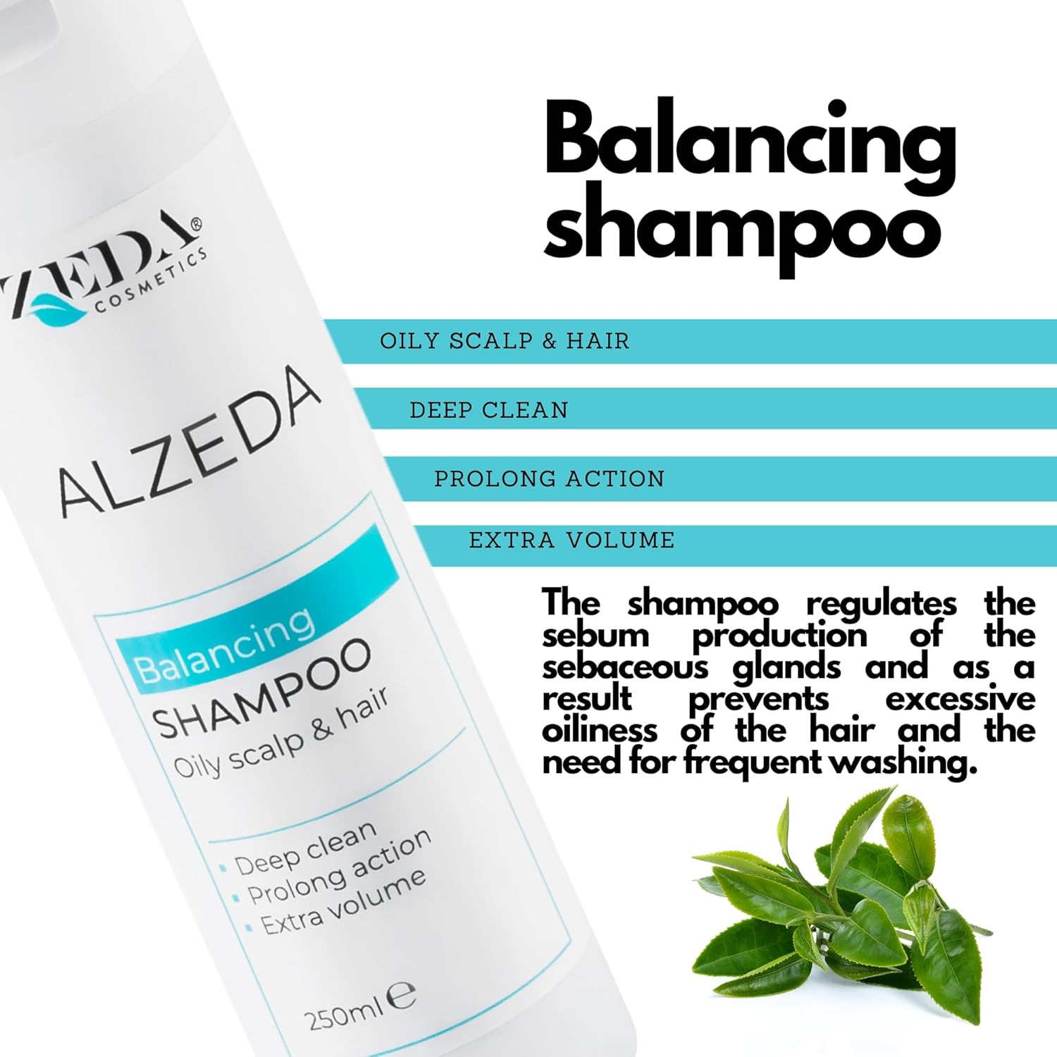 Balancing shampoo 250 ml – balancerende shampoo voor vettige hoofdhuid en haar – dieptereiniging en volume – 100% puur groene thee-extract, vitamine F en aminozuren