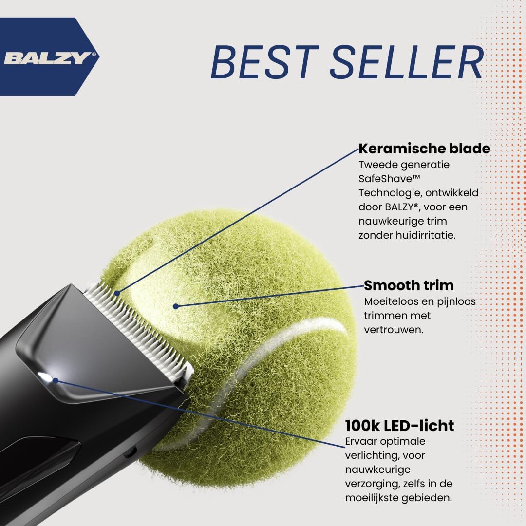 De ultieme grooming set voor mannen, van BALZY The BushBuster 4.0 Ontdek precisie-grooming met The BushBuster 4.0, de trimmer van de volgende generatie die speciaal is ontworpen voor B*lls & Body. Dit revolutionaire gereedschap beschikt over SafeShave blades van de tweede generatie, waardoor maximale veiligheid en prestaties worden gegarandeerd. Zeg vaarwel tegen sneetjes & huidirritatie en hallo tegen moeiteloos trimmen met geavanceerde SafeShave Technology. THE SNOUTSCRAPER Een oor- en neushaartrimmer die opnieuw is uitgevonden. Krachtig, handig en ontworpen voor maximale prestaties en gebruiksgemak. Comfortabel en veilig dankzij de SafeShave Technology. Krachtige 9000 toeren motor en 100% waterdicht.