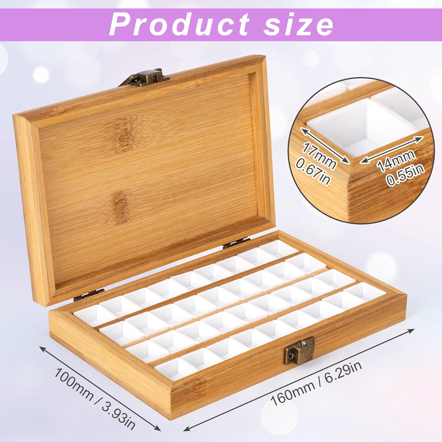 Bamboe Aquarel Verf Palet 36 Lege Halve Pannen Houten Reisdoos Case voor Acryl Gouache Schilderen Amateur Hobbyisten Schilderen Kunstenaars Liefhebbers Homecoming