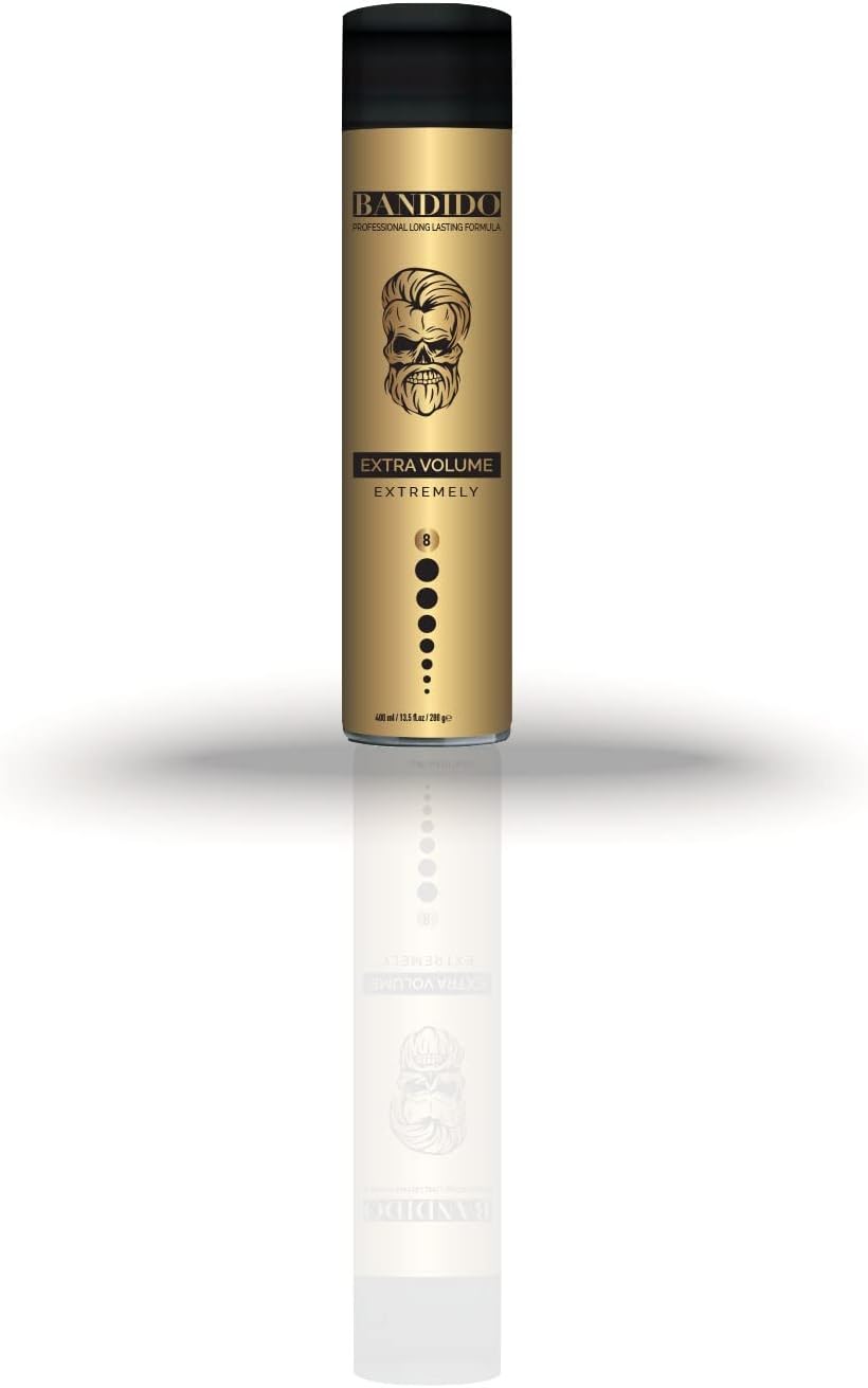 Bandido Haarspray extra volume, 400 ml, goud, haarspray voor heren, volume spray met sterke grip, extreme houdgraad 8, blijft tot 24 uur zitten en zonder te plakken