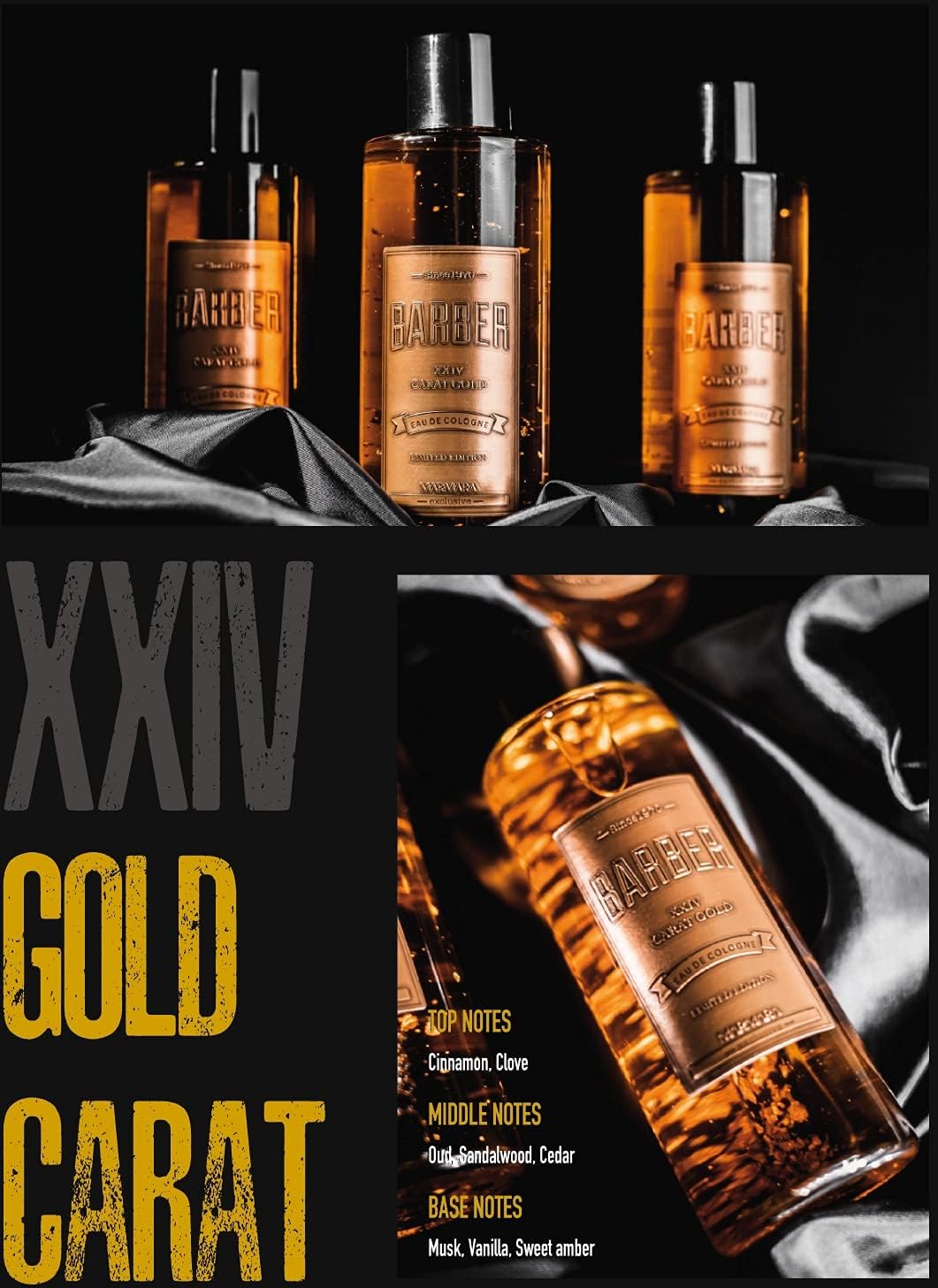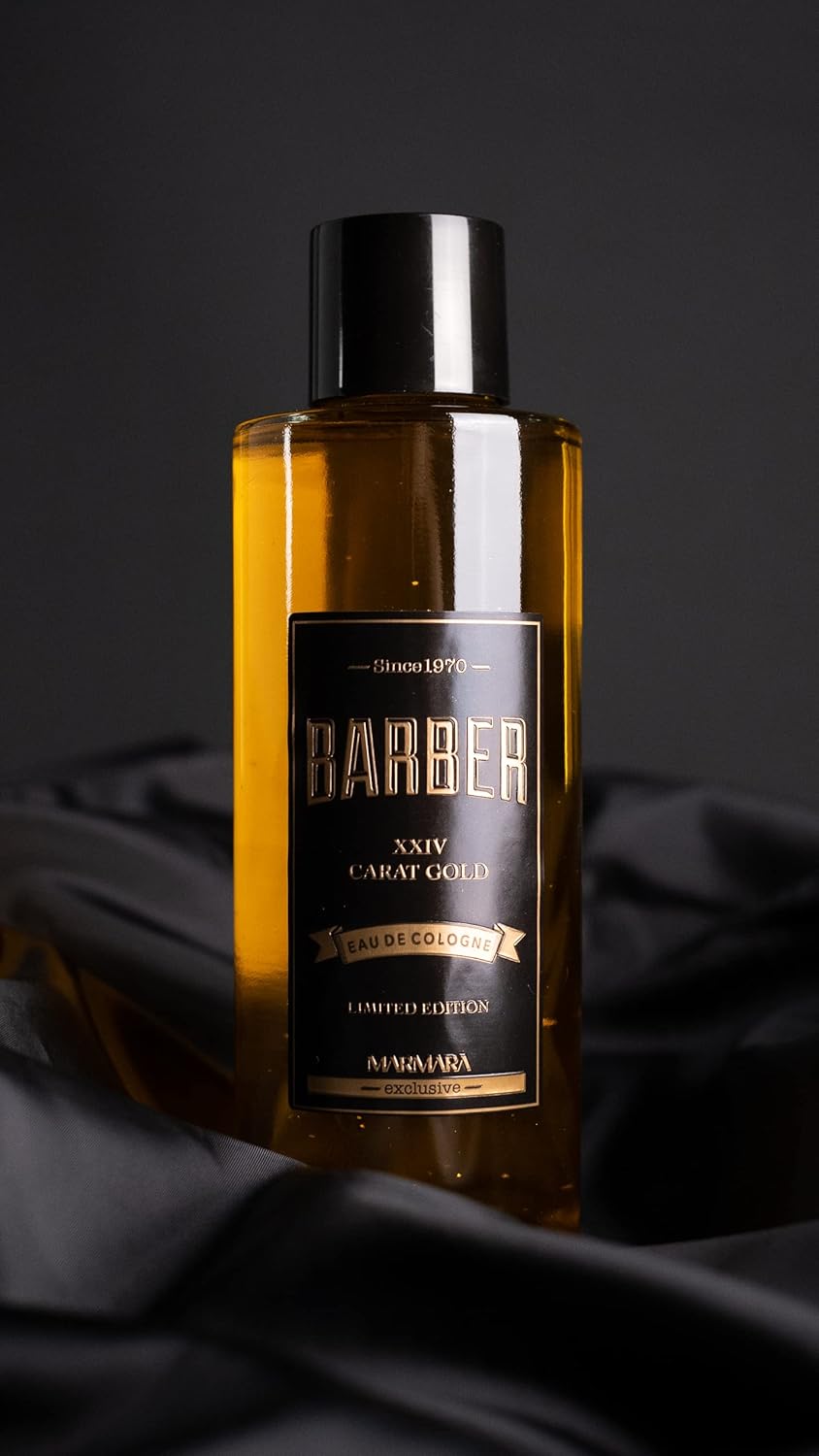 BARBER Eau de Cologne Gold Edition 500ml : BARBER Eau de Cologne die tijd weerstaat en uniek is. Het creëert de harmonie met zijn echte glans vol goud. die in de fles die er toe doen, waar de geuren horen die bij je passen en die het vakmanschap weerspiegelen van de meester die de geur creëerde.