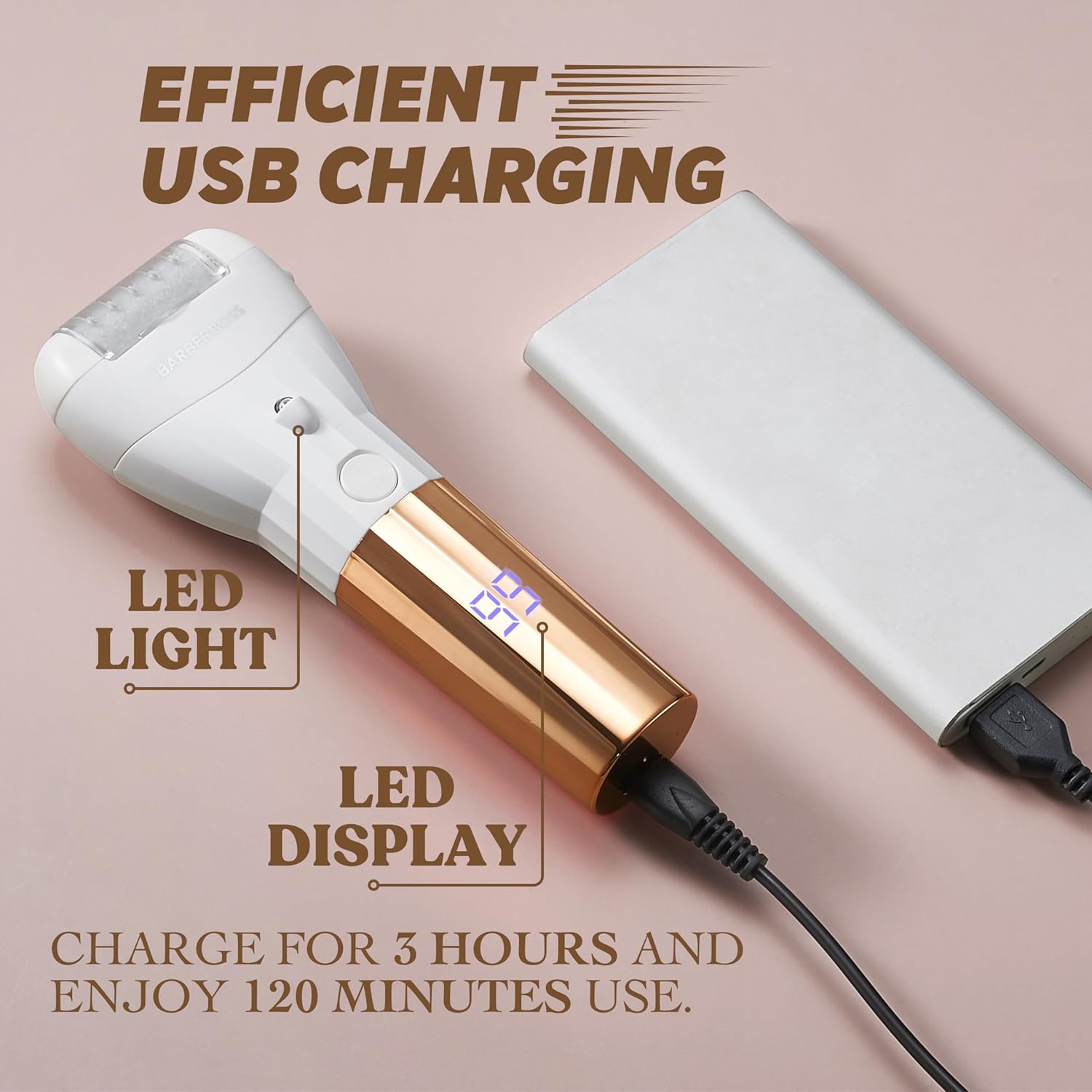 Smart LED-display en USB-opladen. Raad nooit uw batterijstatus met ons heldere LED-display. Bovendien zorgt het ingebouwde LED-licht voor precisie, zelfs op moeilijk bereikbare plaatsen. Ervaar uitgebreide voetverzorgingssessies met 120 minuten gebruik na slechts 3 uur opladen. Met de aanpasbare 5V1A USB-interface is opladen handig, of het nu via laptop, carport, stopcontact of powerbank is.