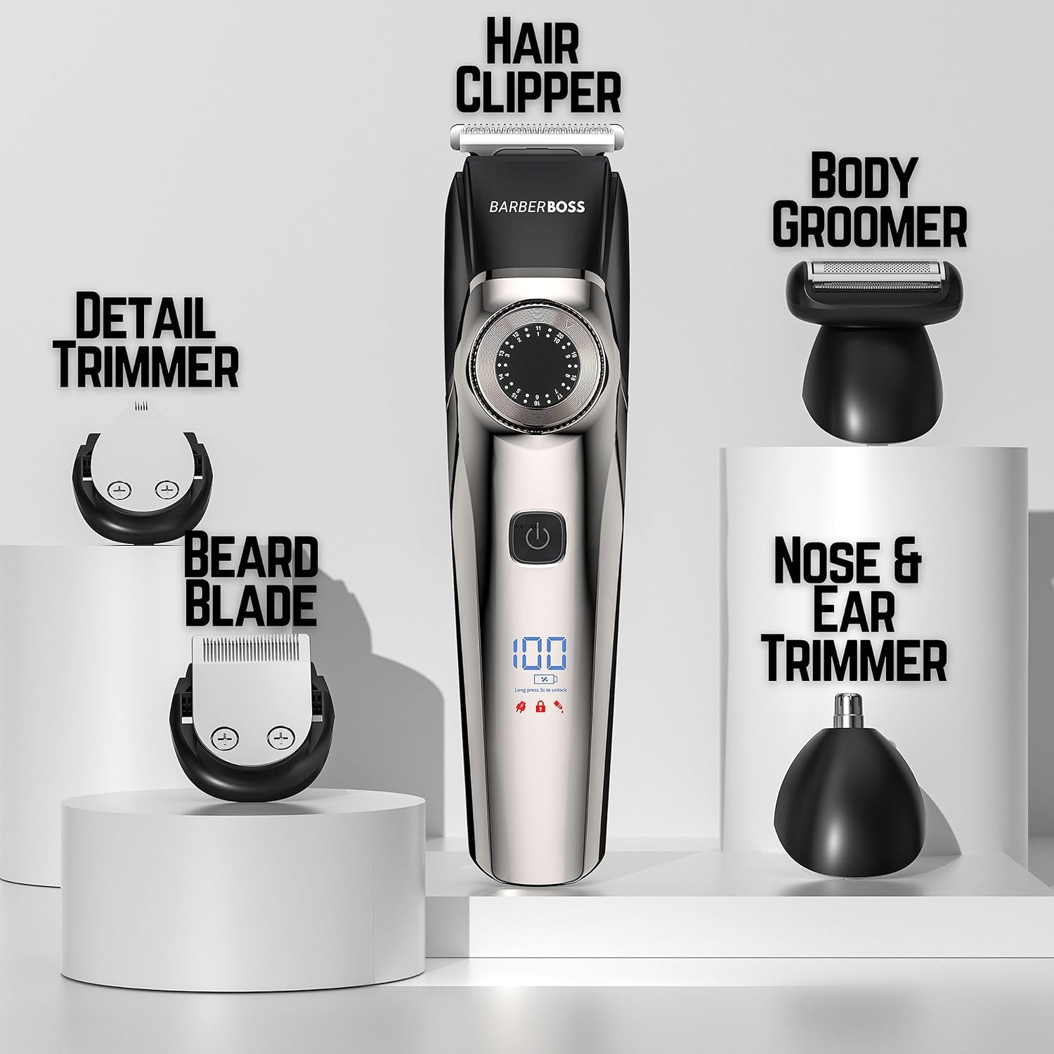 BarberBoss Professionele baardtrimmer, tondeuse voor mannen, oor- en neustrimmer, 39 snijlengtes, kamopzetstukken, precisiewijzerplaat, waterdicht ontwerp, LED-display, QR-6083