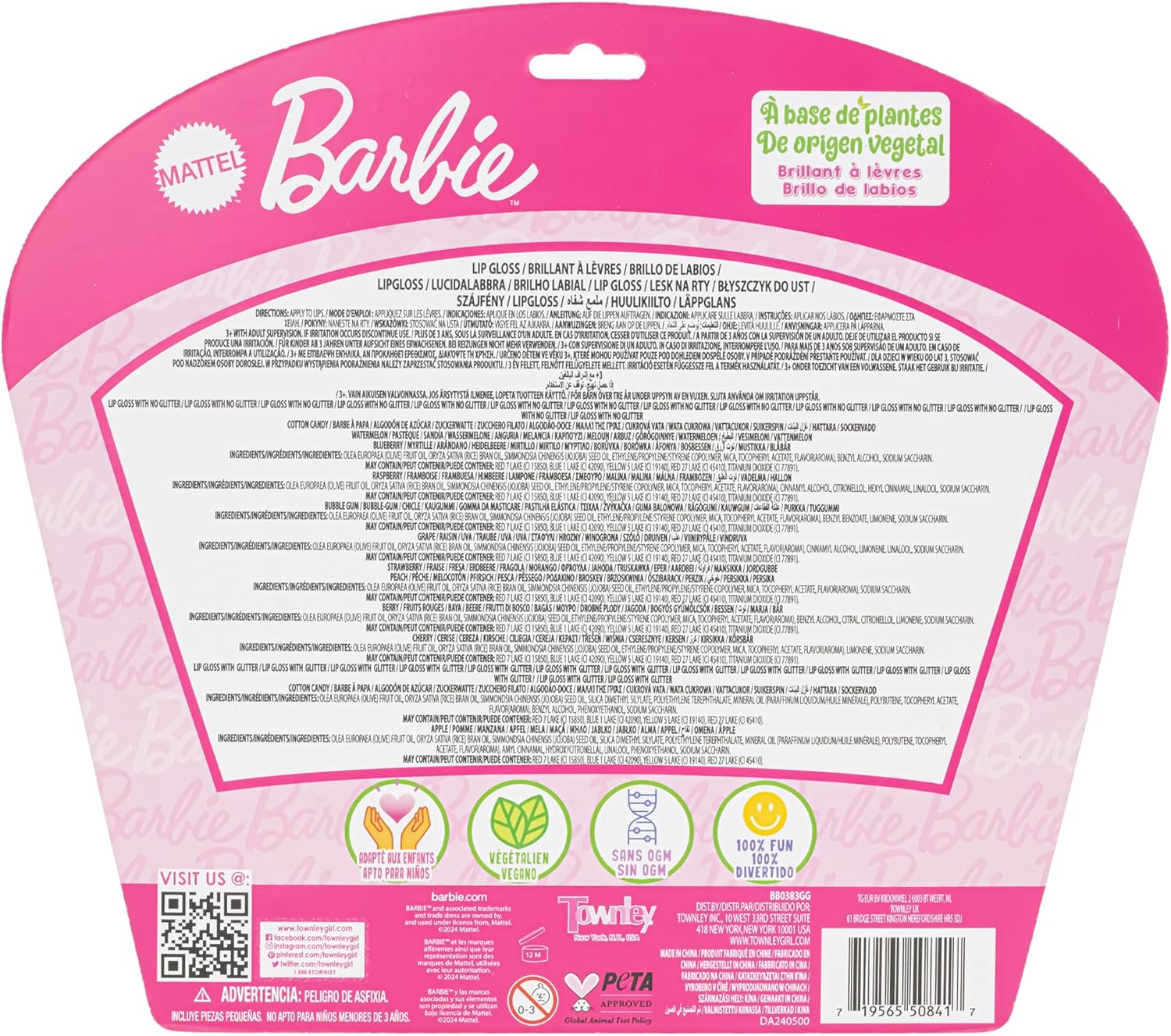 Barbie 12-delige plantgebasserde lipgloss, meidenfeesten, eerste make-up set voor meisjes, perfect voor feestjes, logeerpartijen, en verjaardagscadeaus, leeftijd 3+, van Townley Girl