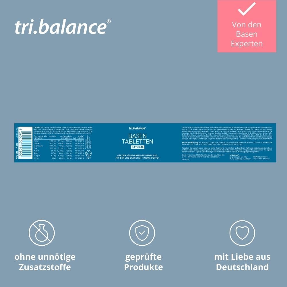 Voor een uitstekend zuur-basehuishouden: de tri.balance basetabletten naturel met zink en basische mineralen helpen om de ideale pH-waarde van 7,4 te bereiken en te behouden. Ze brengen je lichaam terug in balans.