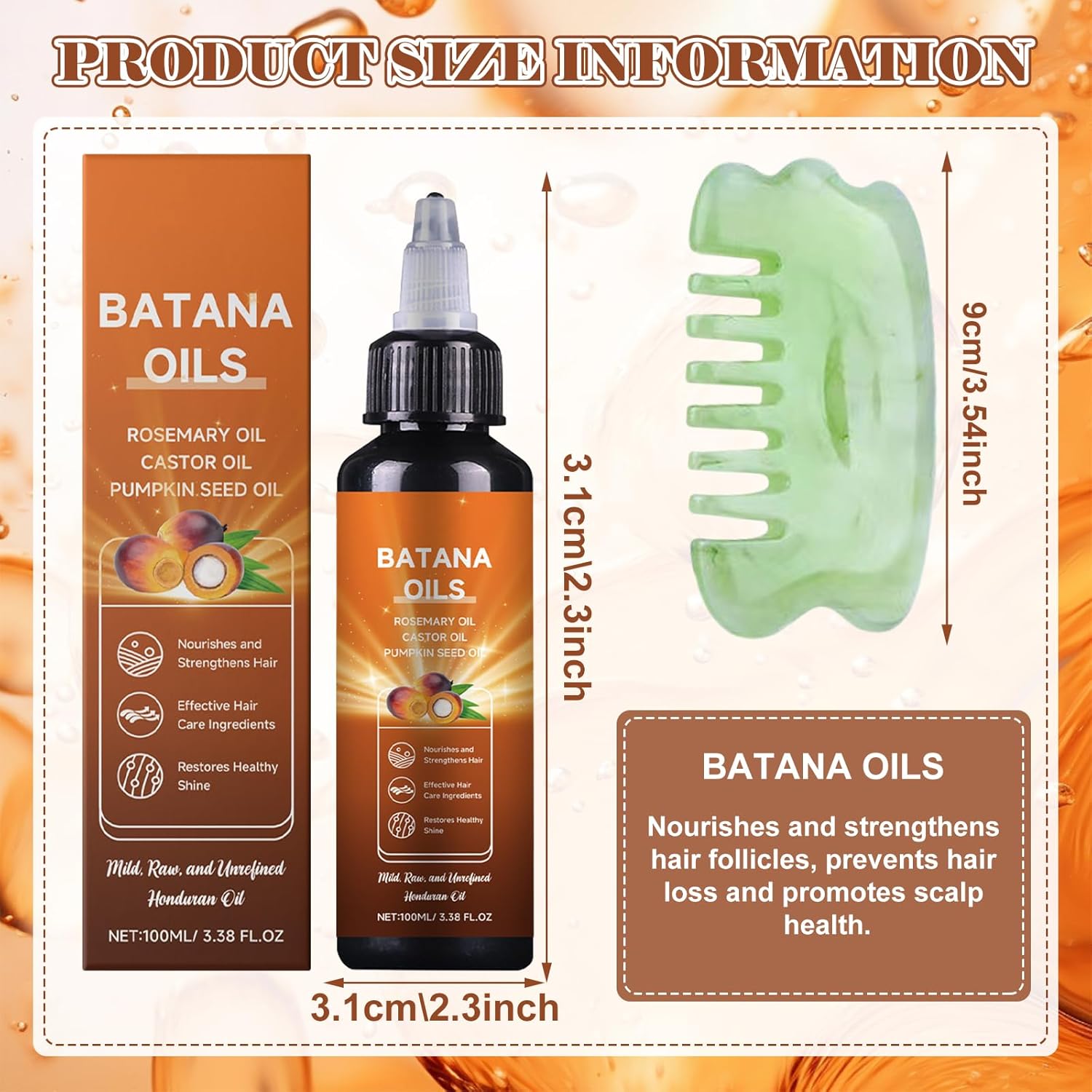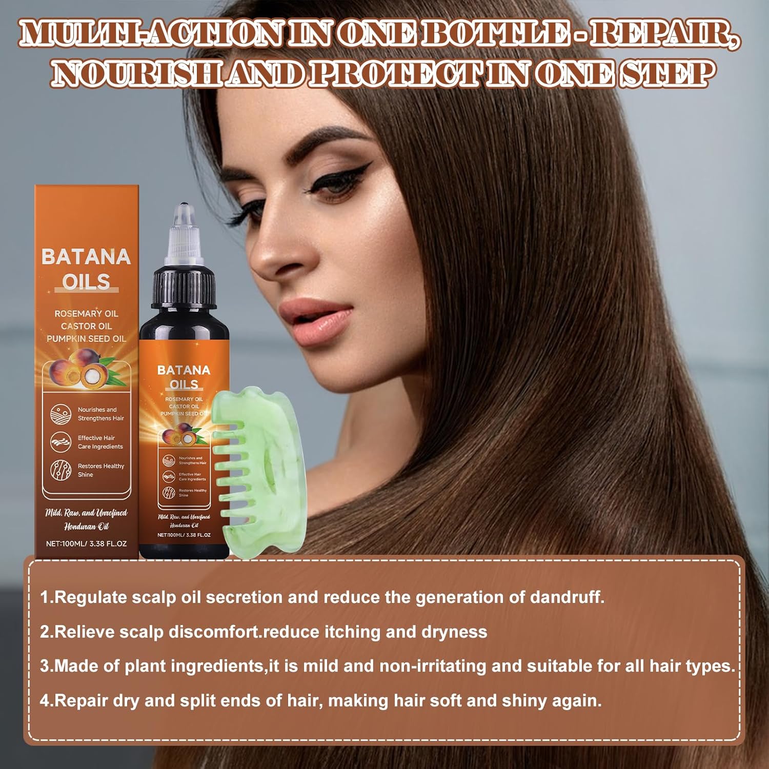 Batana haarolieset: 1 x 100 ml Batana haarolie, 1 x massagekam, geschikt voor alle haartypes, bevordert de haargroei, verbetert de haarstructuur, maakt het haar voller en dikker.