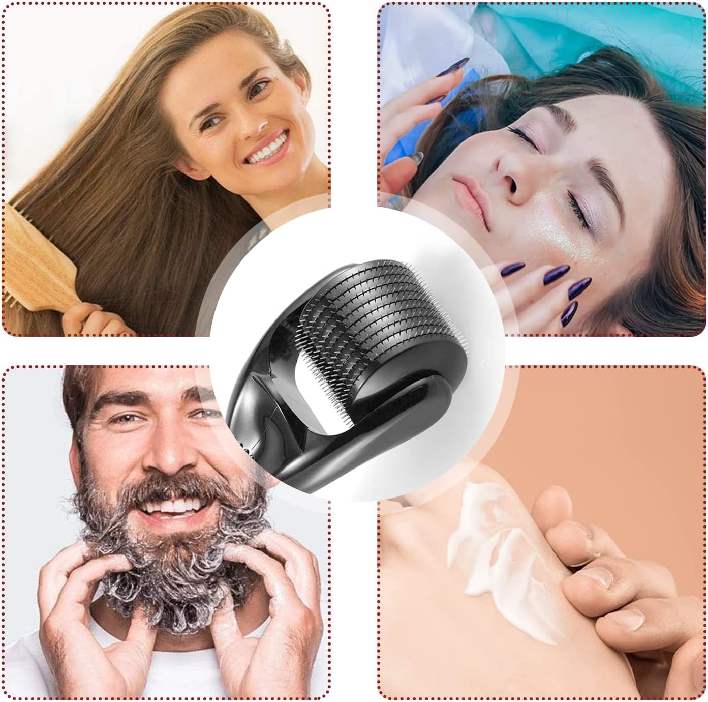 Verbetert de huid: Bij gebruik van de roller worden receptoren gestimuleerd in de huid om huidverzorgingsstoffen te laten penetreren en absorberen. Gebruik met je favoriete gezicht/lichaamscrème of je favoriete serum voor het beste resultaat. Hij kan poriën verminderen, de huid gladmaken en vernieuwen, pigmenten verhelderen, acne-littekens repareren enz.