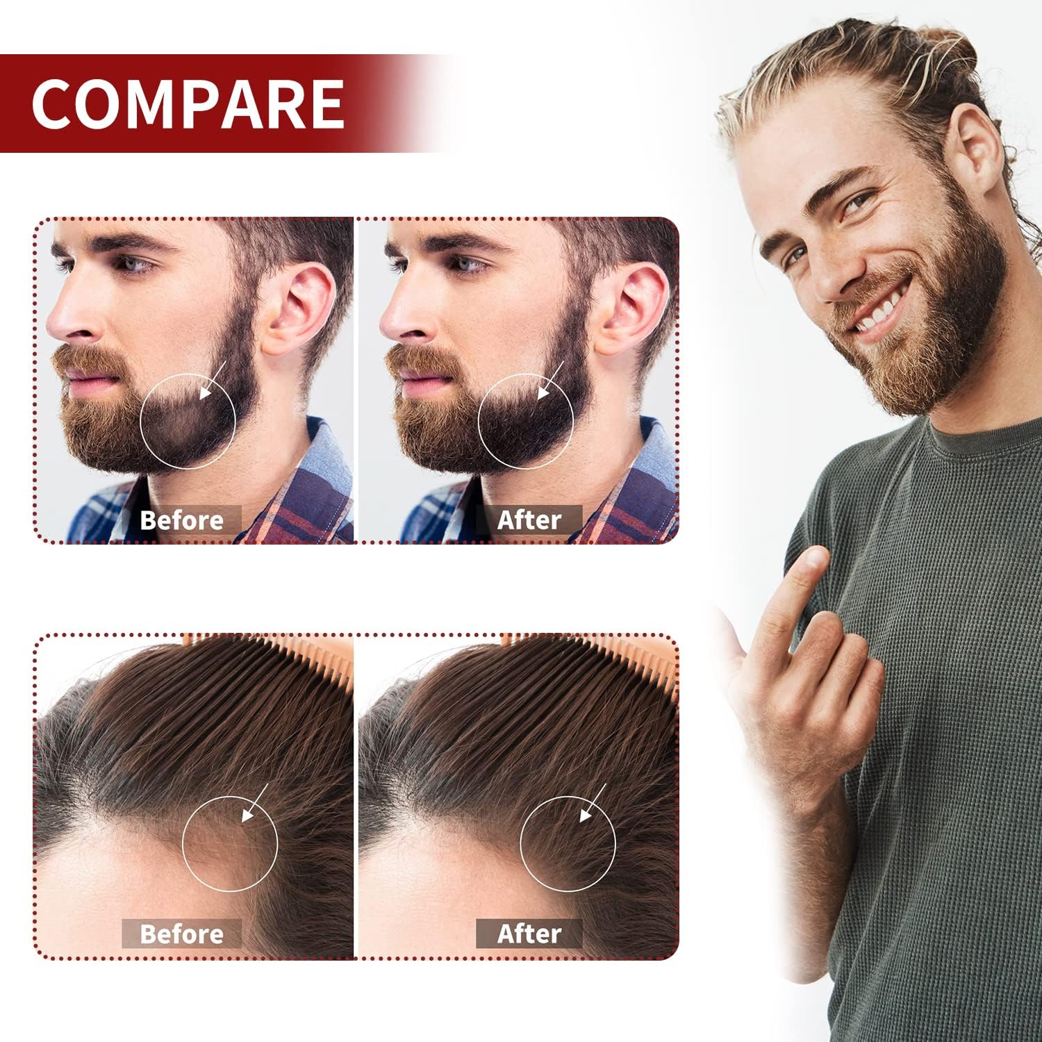 Beard Roller, 0,5 mm, baardgroeiroller, micronaald roller, baardroller, dermaroller voor baardgroei en baardverzorging