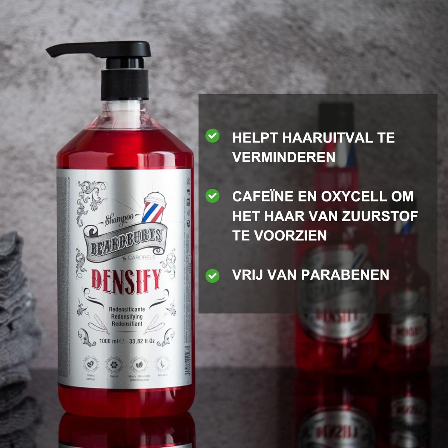 Beardburys Densify Redensifying Shampoo Versterkt en geeft volume aan het haar, zonder parabenen, geschikt voor alle haartypes, 1 liter