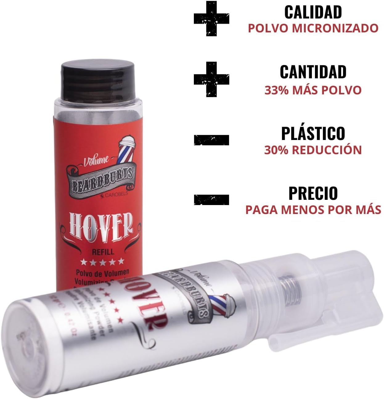 Beardburys Hover Volume haarpoeder en 2 navullingen, sterke fixatie en matte afwerking haarstylingpoeder met natuurlijke en flexibele hold, voegt textuur en volume toe aan fijn haar, 12 g per stuk