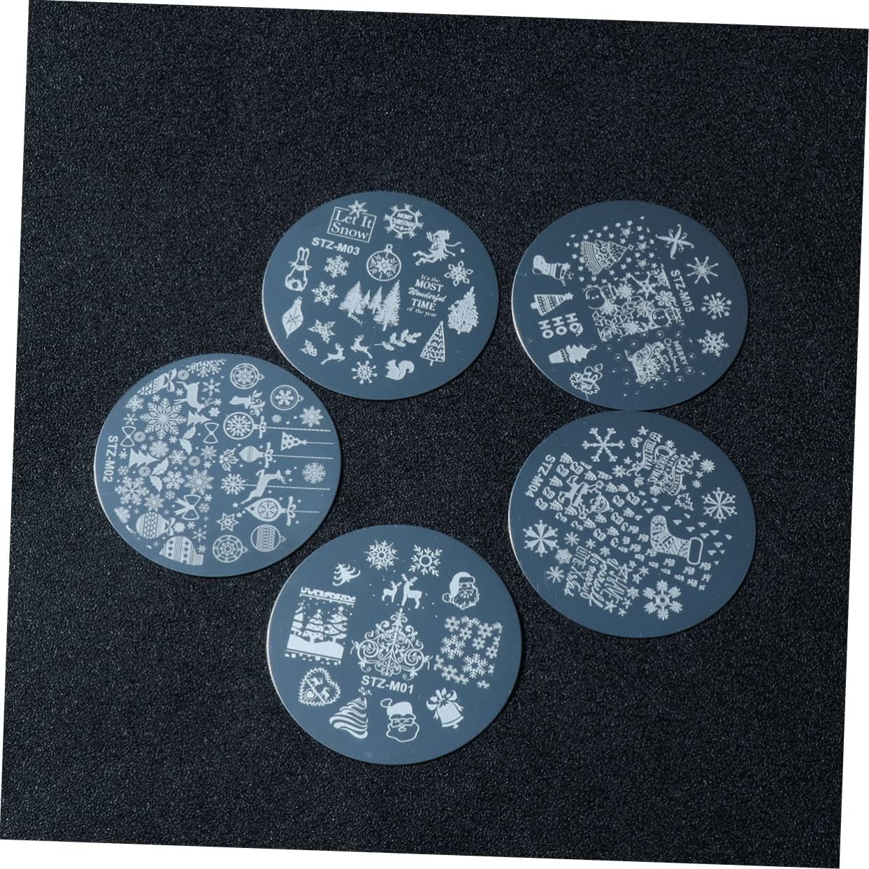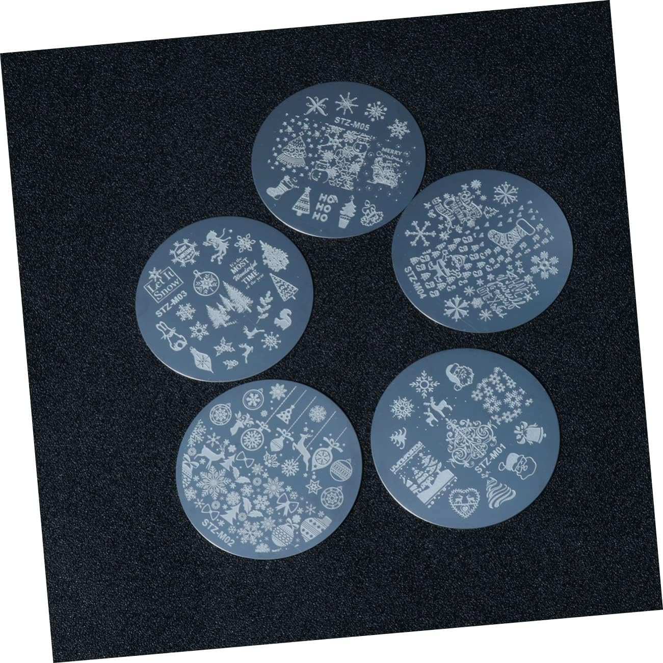 5Pcs Clear Jelly Nail Art Stamper Christmas Nail Stencil Christmas Nail Stamping Plate Kit Nail Kit Set Nail Decor Kit Nail Stamp Kit Mould Template Peg Board Major Guide Stickers
