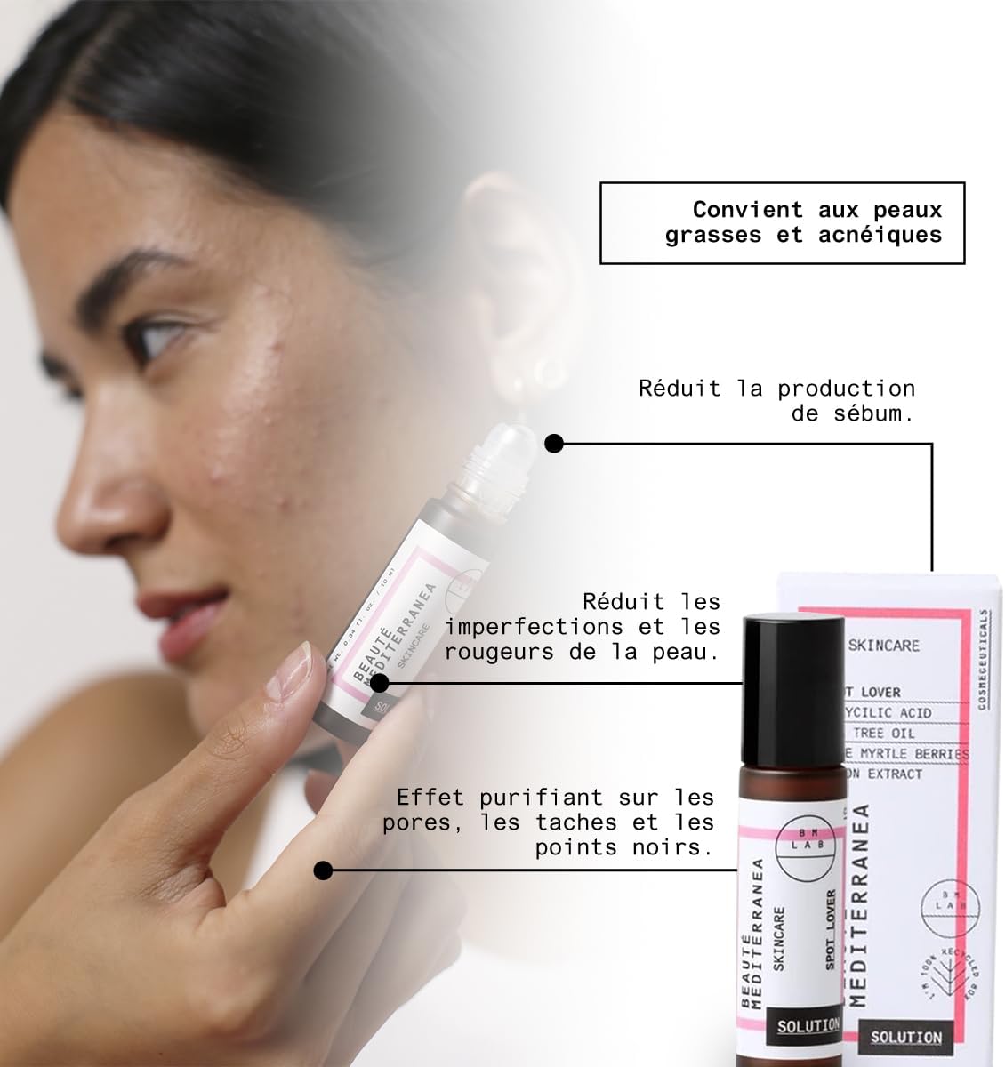 Beauté Mediterranea Roll-on gezichtsbehandeling met salicylzuur – Acne-gevoelige huid en onvolkomenheden Elimineert overtollig talg en zuivert – 100% Veganistisch – 10 ml (Pack van 1) Spot Lover