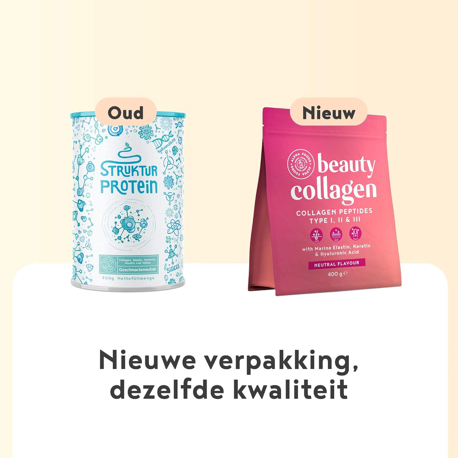 Beauty Collageenpoeder (400 g) – Collageenhydrolysaatpeptiden Type I, II & III – Hooggedoseerd collageenpoeder met hyaluronzuur, elastine en keratine – Neutraal – Uit Duitsland van Alpha Foods