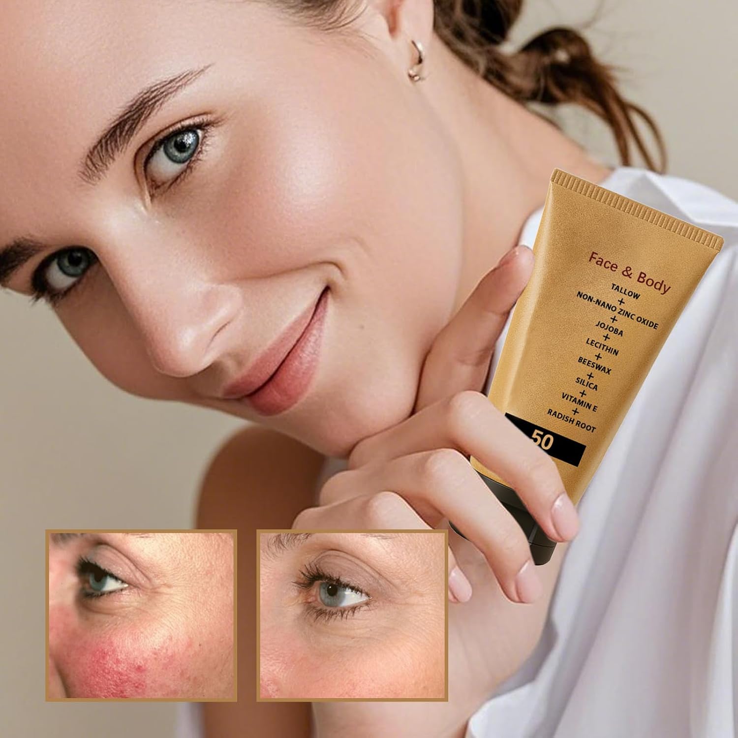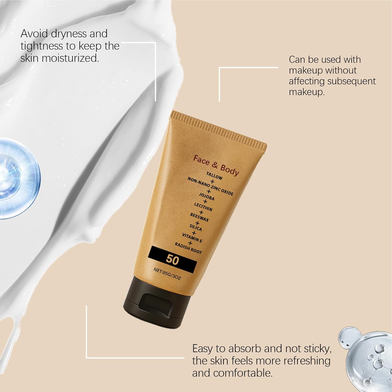 Moisturizing & Non-Greasy Formula: The non-greasy formula of this tallow sunscreen helps keep your skin moisturized throughout the day, without feeling oily or heavy, making it perfect for use on both face and body