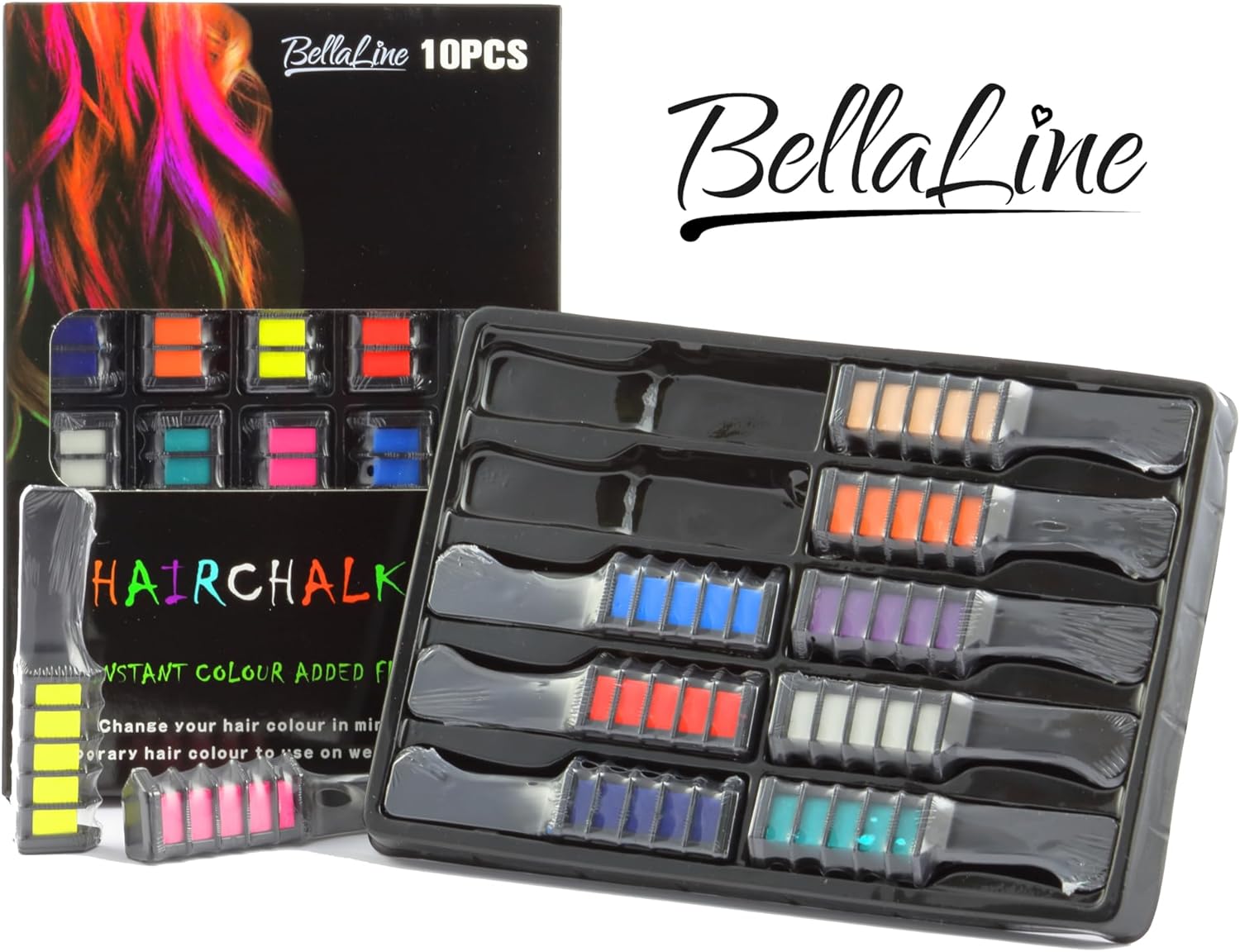 BellaLine Hair chalk 10 pieces – Hair chalk for children – Hair chalk – Hair dye – Crafts for children – Chalk – Lol – Hair chalk comb – Haarstift Children’s parties – Hair mascara -Smink – Carnival