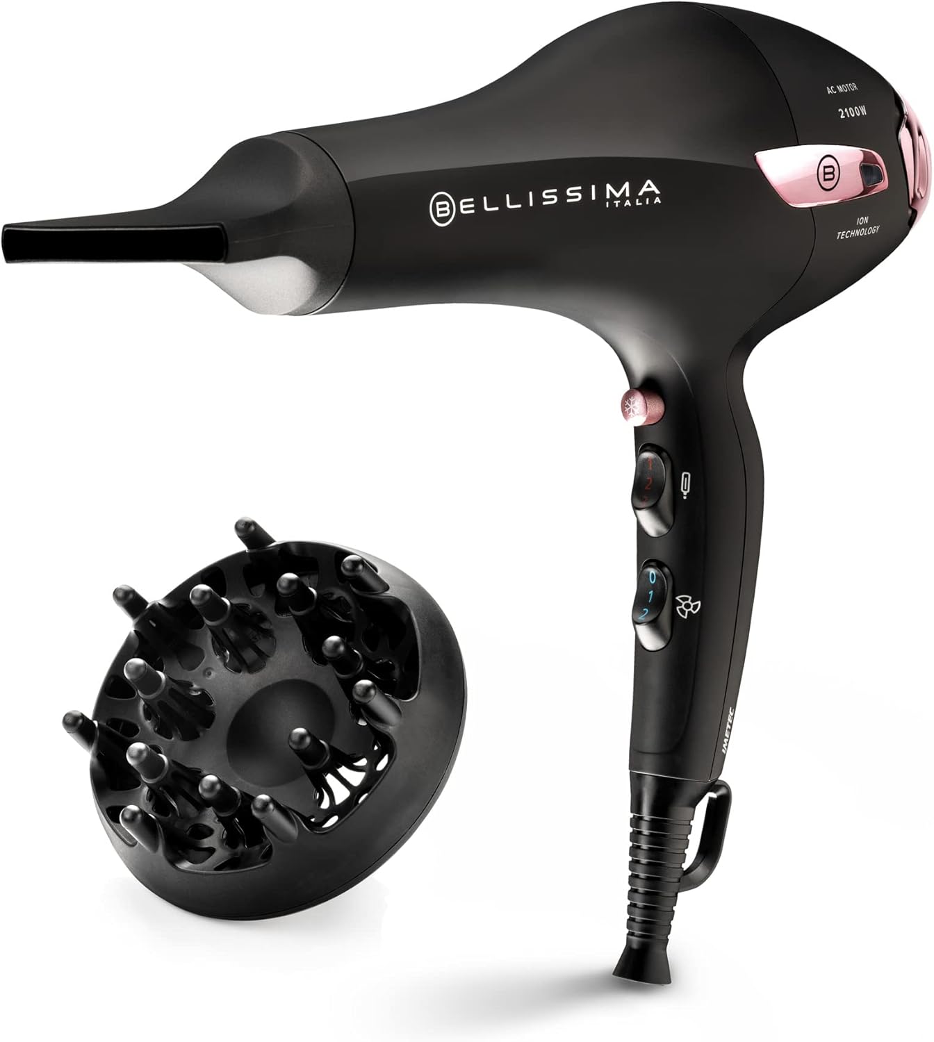 Bellissima P7 3200 Haardroger, professionele motor, 2100 watt, ionisator, 2 snelheden, 3 temperaturen, krultang, koude luchtstraal, licht, reisetui, kabelclip