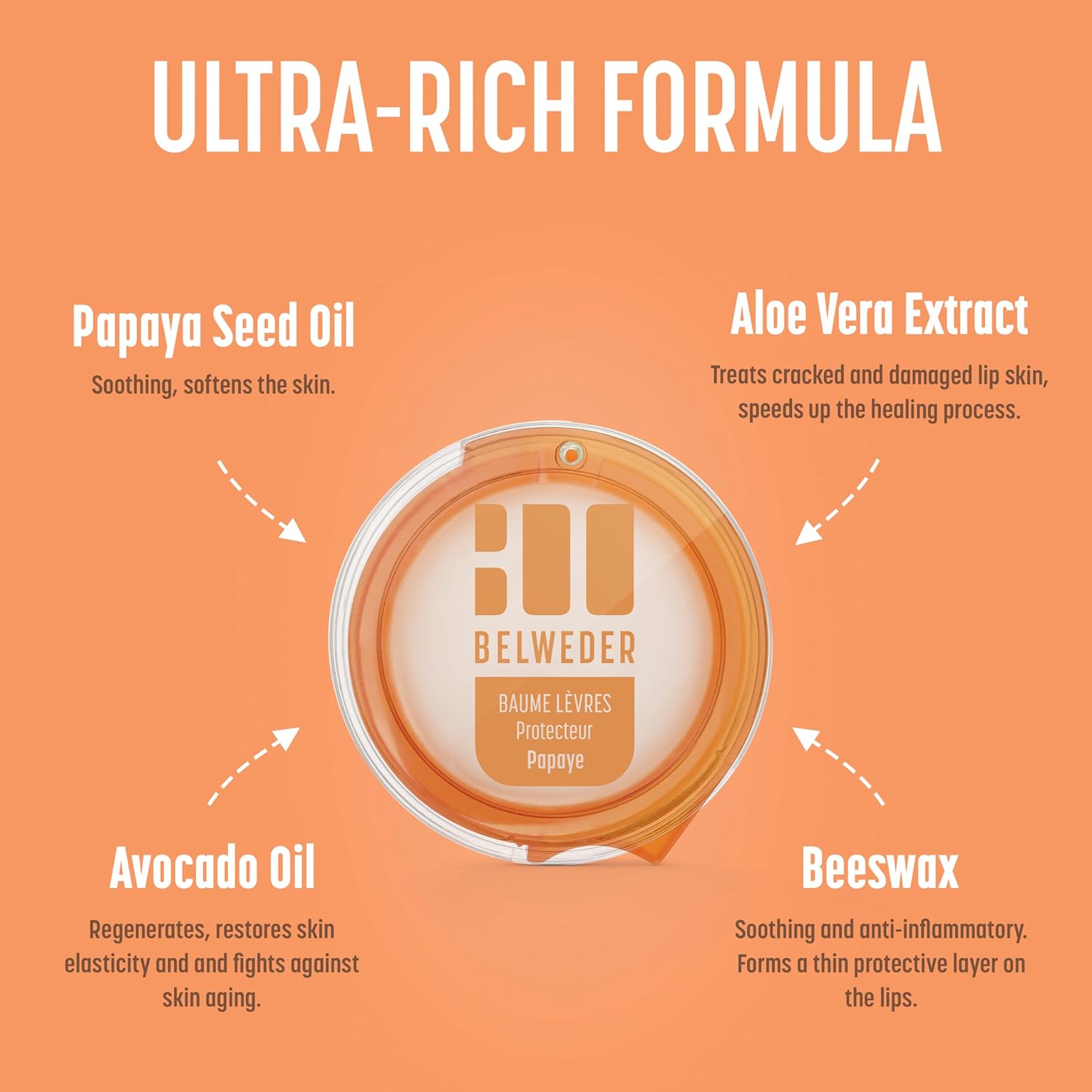 BELWEDER – Lippenbalsem met Papaja 5,5ml – Lippenverzorging en Bescherming – Hydratatie en Regeneratie van de Lippen – Transparante Lip Balm voor Mannen en Vrouwen