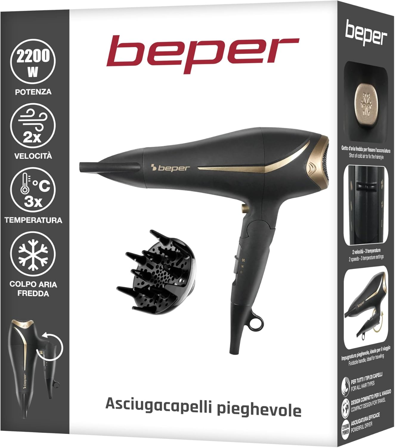 BEPER 40.404 opvouwbare phon 2200 watt – phon haar, diffuser en concentrator inbegrepen