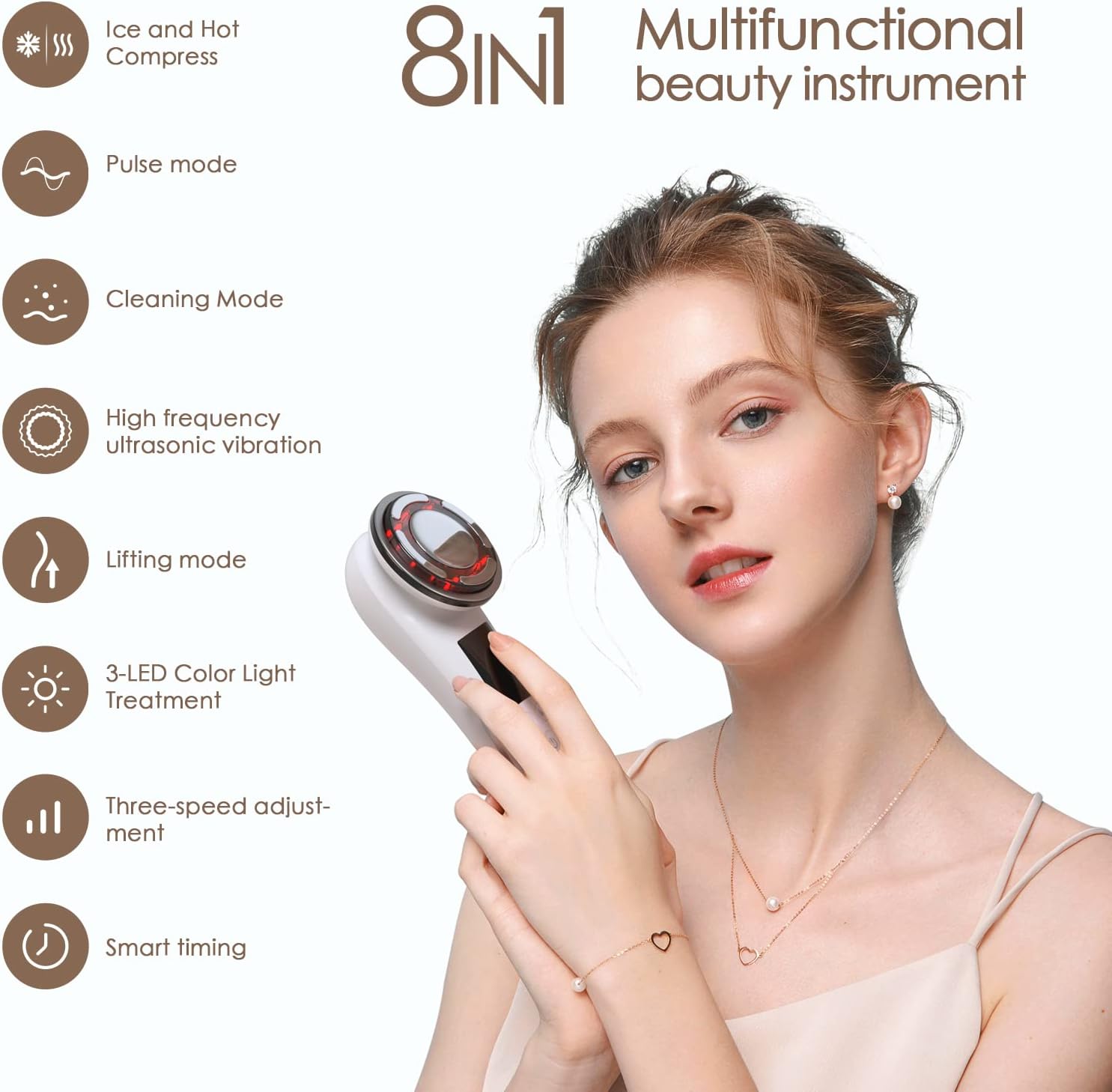 ❤ Bestauty 8-in-1 huidverzorgingsmodi gezichtsmassageapparaat: Bestauty gezichtsmassageapparaat biedt reinigingsmodus, ijscompressenmodus, hete compressenmodus, 3-LED kleurlichtverzorging, hoogfrequente ultrasone trillingen, pulservoedingsabsorptiemodus en EMS-massagemodus. Met lcd-paneel, oplaadbare 1000 mAh-batterij en standaard.