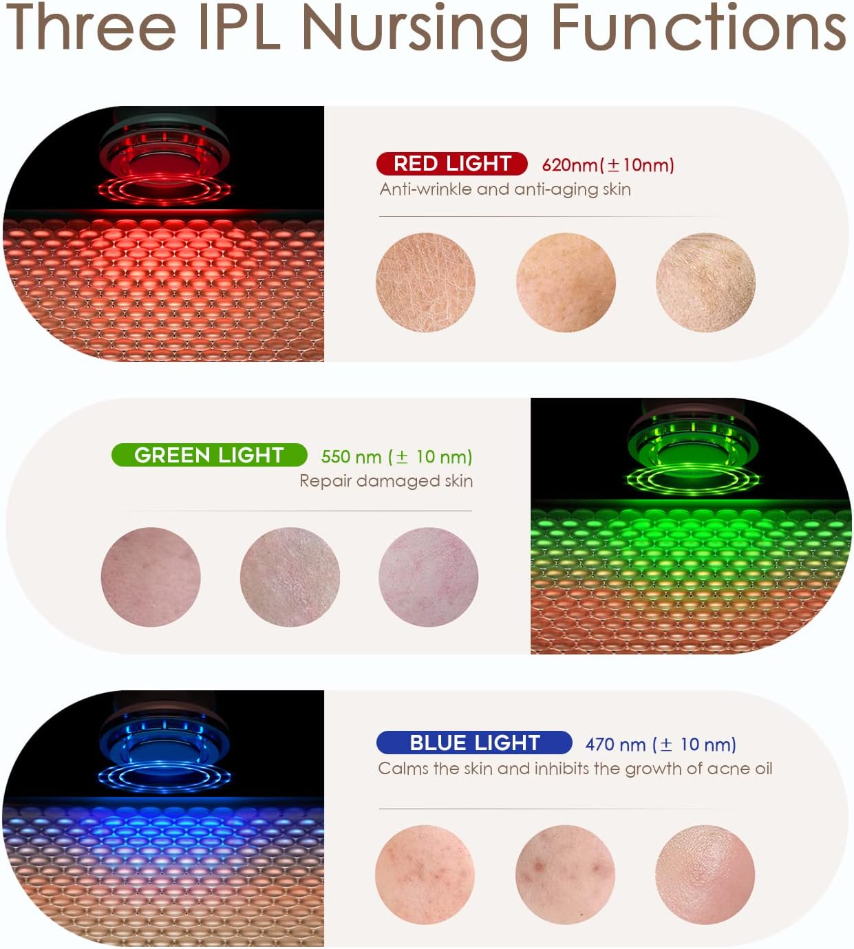 ☻ 3 led-gezichtsfototherapie-functie: onze rimpelverwijderaar gezichtsmassage heeft drie fototherapie-effecten, rood licht: bevordert de bloedcirculatie, anti-rimpel en anti-aging; groen licht: verwijderen van donkere vlekken en macula, bleker; blauw licht: kalmeert de huid en remt de groei van vettige acne.