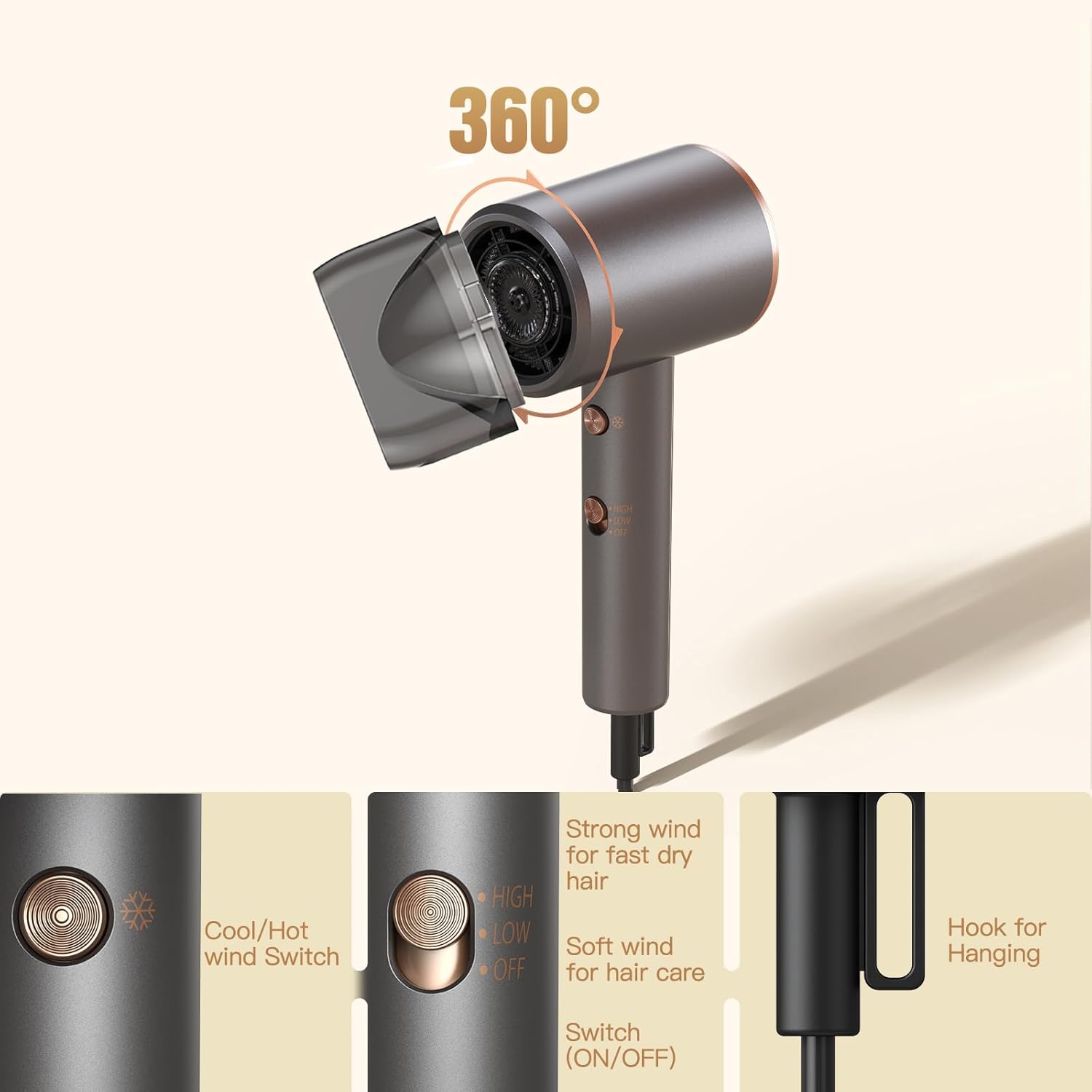 Uitstekende prestaties, bijzonder gebruikerservaring: Deze Bestauty-cherfroter heeft een slimme ruisonderdrukkingsontwerp met een geluidniveau van minder dan 45 decibel, waardoor u een rustige en comfortabele gebruikerservaring krijgt. Hij heeft twee wind snelheden en instellingen voor heet en koud en is uitgerust met twee mondstukken en een haarverdrooghoedje, zodat u gemakkelijk de haarsmaak kunt maken die u wilt. Deze kleine cherfroter is zeer geschikt voor reizen, zakelijke reizen, thuisgebruik en in salons.