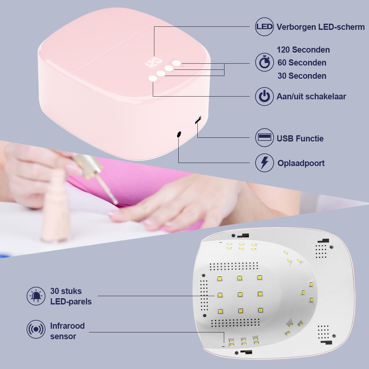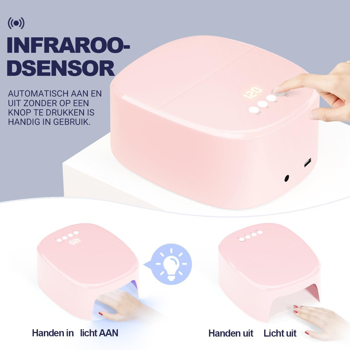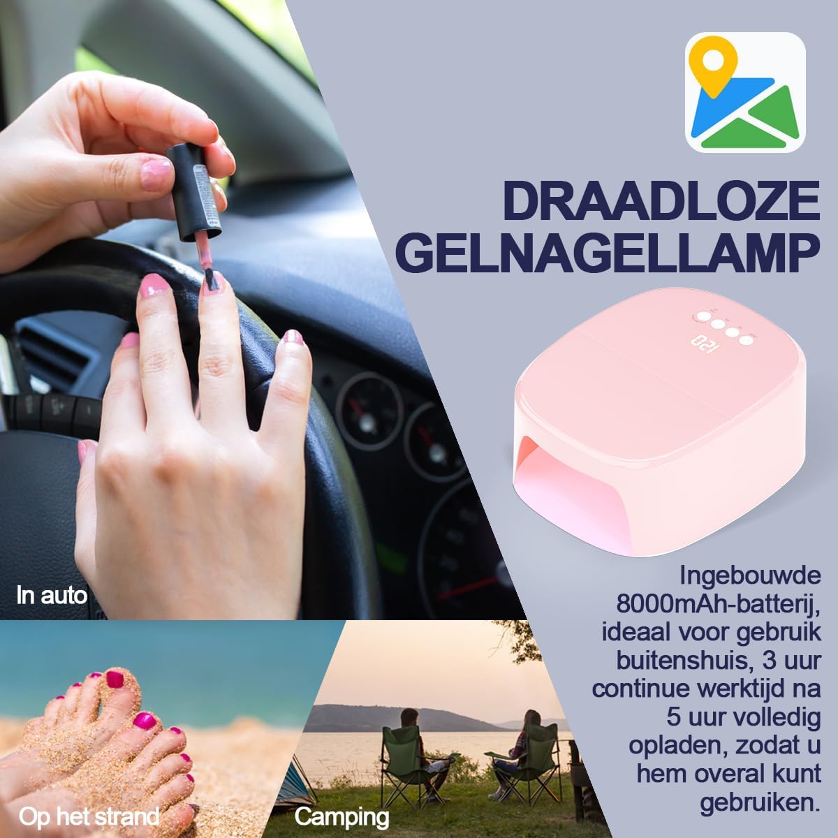 【Cordless Design】This cordless UV Led nail lamp has a built-in rechargeable battery, and the premium quality battery can be used for 2-3 hours after being fully charged. You can take it anywhere.