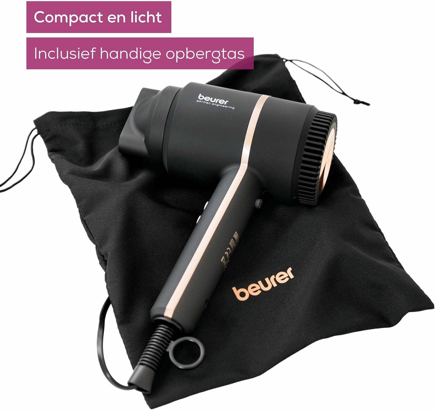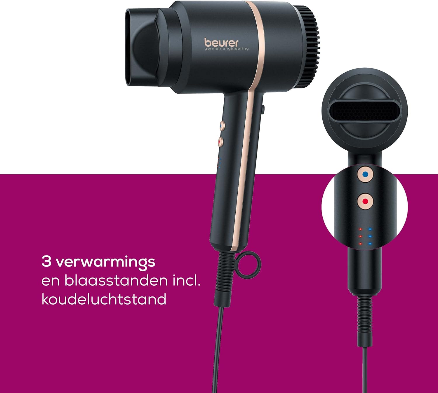 Beurer HC 35 Haardroger, compacte haardroger met ionische functie voor glanzend en glad haar, inclusief stylingmondstuk, 1600-2000 Watt, zwart/rosé