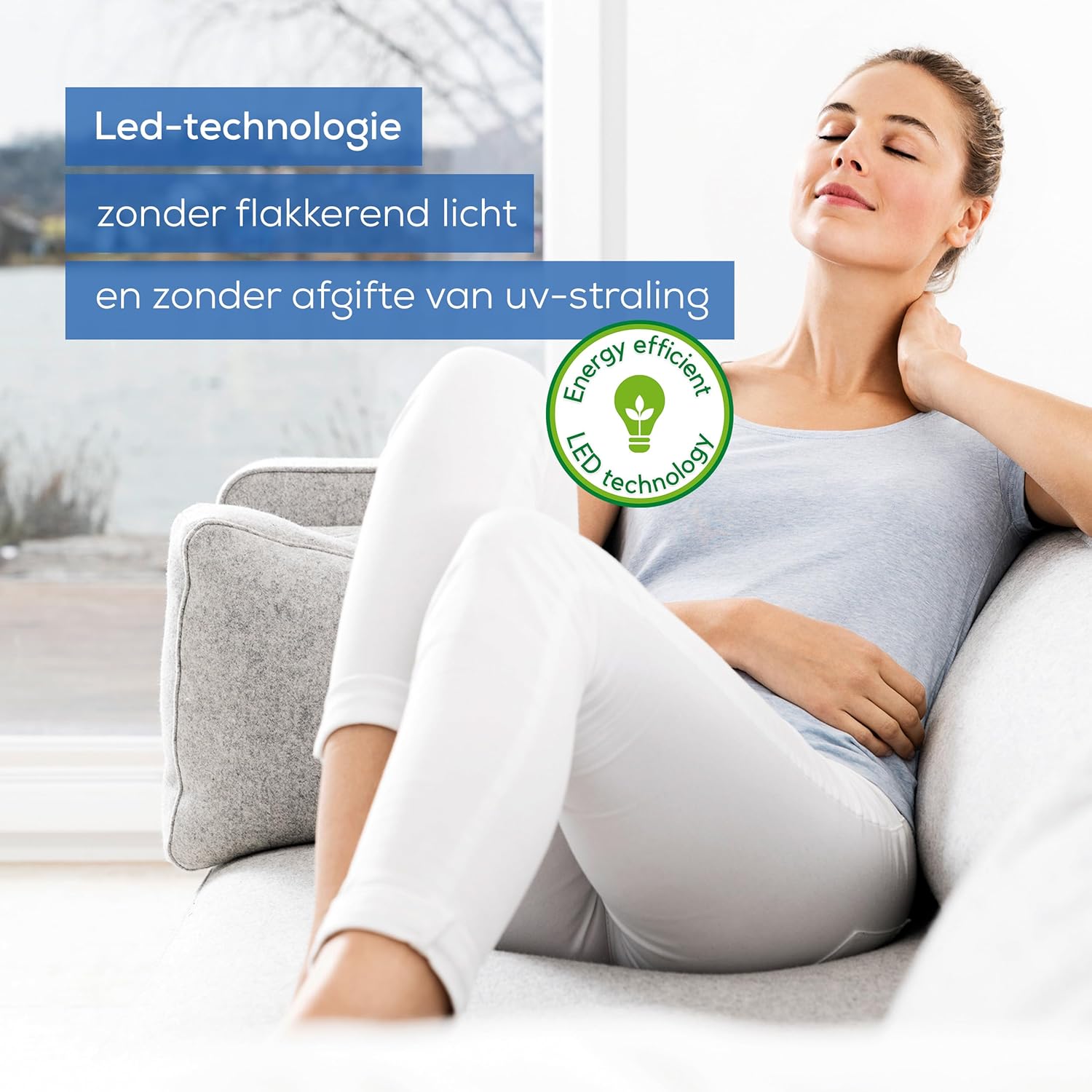 ENERGIEBESPAREND: Dankzij de gebruikte LED-technologie is de lichttherapielamp bijzonder energiebesparend en maakt een gelijkmatige, flikkervrije en UV-vrije verlichting mogelijk