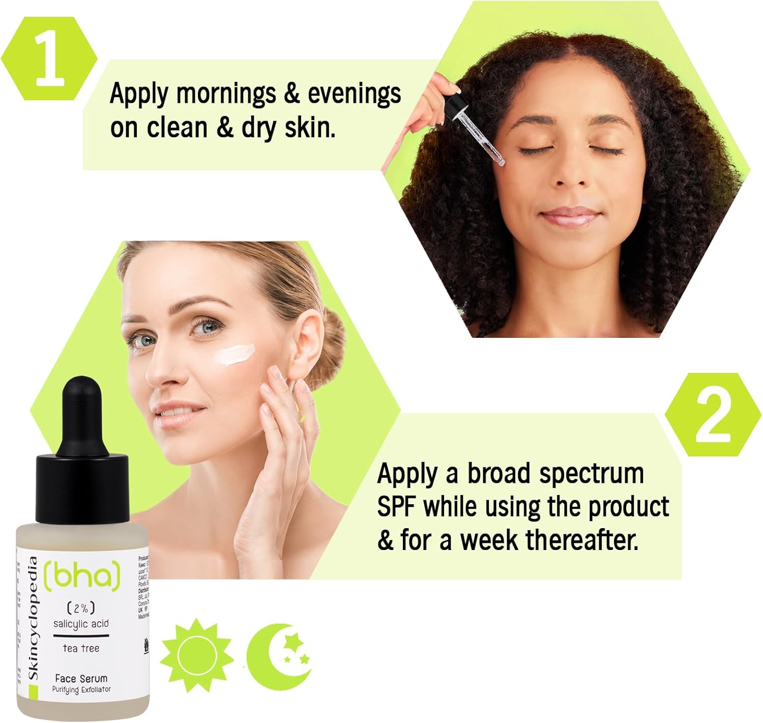 Ervaar de transformerende werking van ons BHA peelingserum met salicylzuur, dat speciaal is ontwikkeld om je huid te verduidelijken en onzuiverheden effectief te bestrijden. Dit anti-puistjesserum verwijdert zacht dode huidcellen, bevrijdt je poriën en zorgt voor een helderder, gelijkmatiger huidbeeld, ideaal voor vettige en onzuiverheden neigende huid. Het salicylzuur dringt diep in de poriën door en werkt antibacterieel om acne, mee-eters en huidontstekingen gericht te bestrijden. In combinatie met theeboomolie, een natuurlijk wondermiddel tegen onzuivere huid, wordt de huid gekalmeerd en onzuiverheden zichtbaar verminderd. Bovendien bevat het serum zink, dat met zijn ontstekingsremmende werking helpt roodheid te verlichten en de huid te kalmeren. Dankzij de snel intrekkende formule laat het BHA peelingserum geen kleverig gevoel achter en is het ideaal voor gebruik onder make-up. De lichte textuur zorgt voor een aangenaam huidgevoel, zonder de poriën te verstoren of de huid te verzwaren. Gun jezelf de perfecte verzorging om je huid te reinigen, onzuiverheden te bestrijden en je huidbeeld zichtbaar te verbeteren. Voor de beste verdraagzaamheid raden wij aan om voor het eerste gebruik een patchtest uit te voeren.