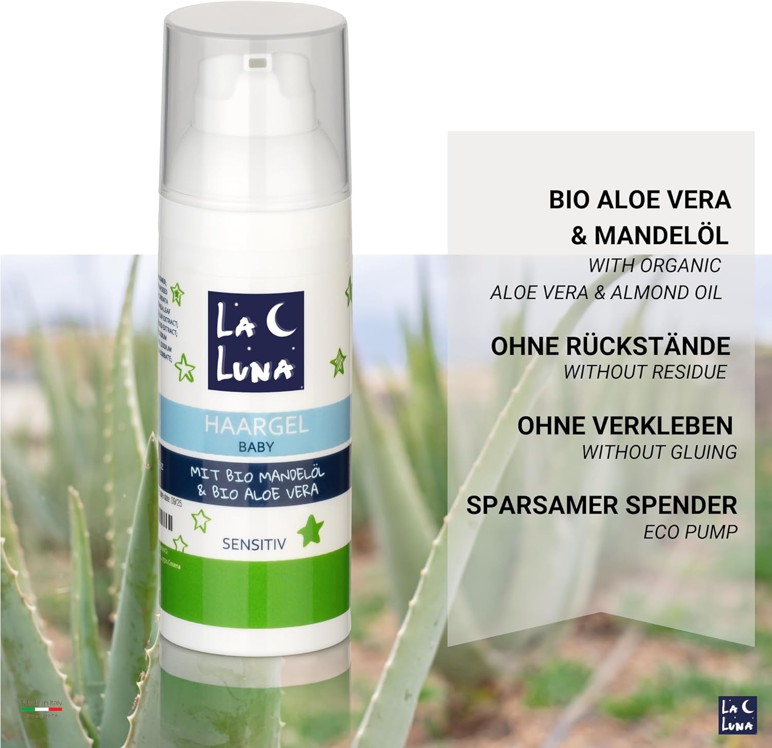 De professionele styling-gel is ontwikkeld om het haar grip en een matte afwerking te geven. De haargel van LA LUNA is perfect voor het stylen van casual surferkapsels of om afzonderlijke strengen indrukwekkend te accentueren. Bovendien beschermt het het haar tegen schadelijke invloeden en uv-stralen. Het is bijzonder zacht, verzorgend en beschermt glanzenloze, doffe en poreuze haarpunten. Het geeft het haar glans en staat zonder het te verzwaren of te plakken en kan zuinig worden gebruikt, gemakkelijk weer uit te wassen.