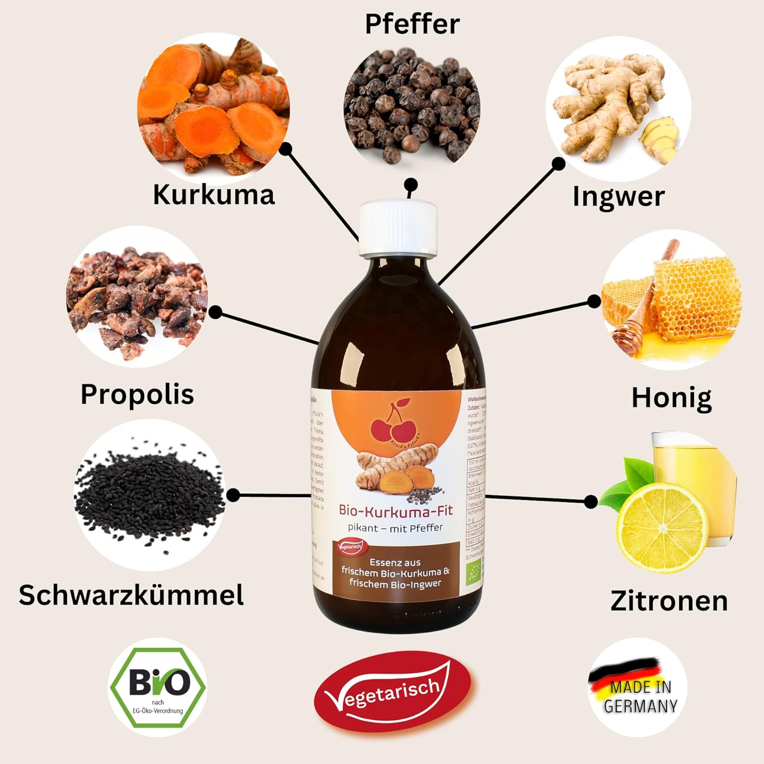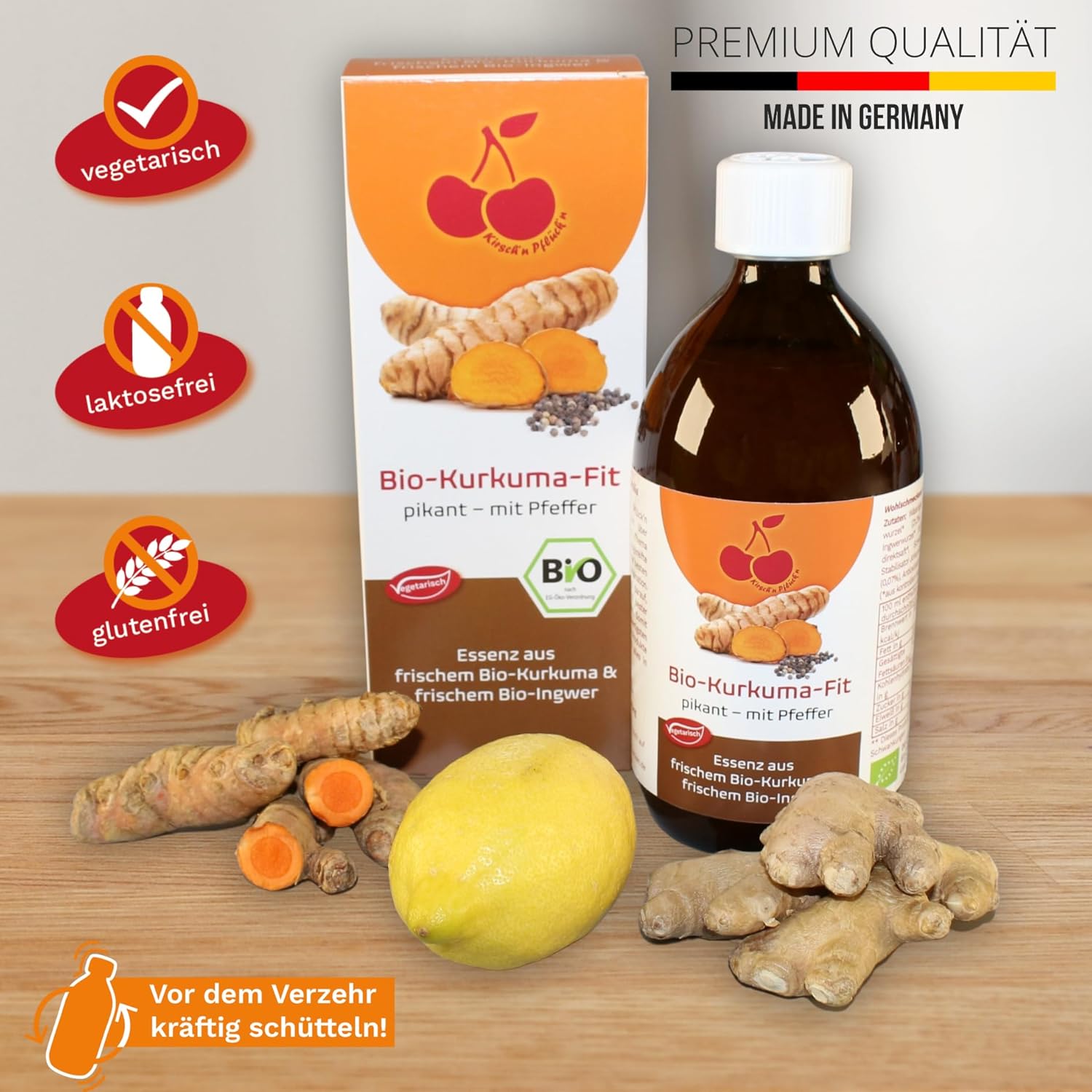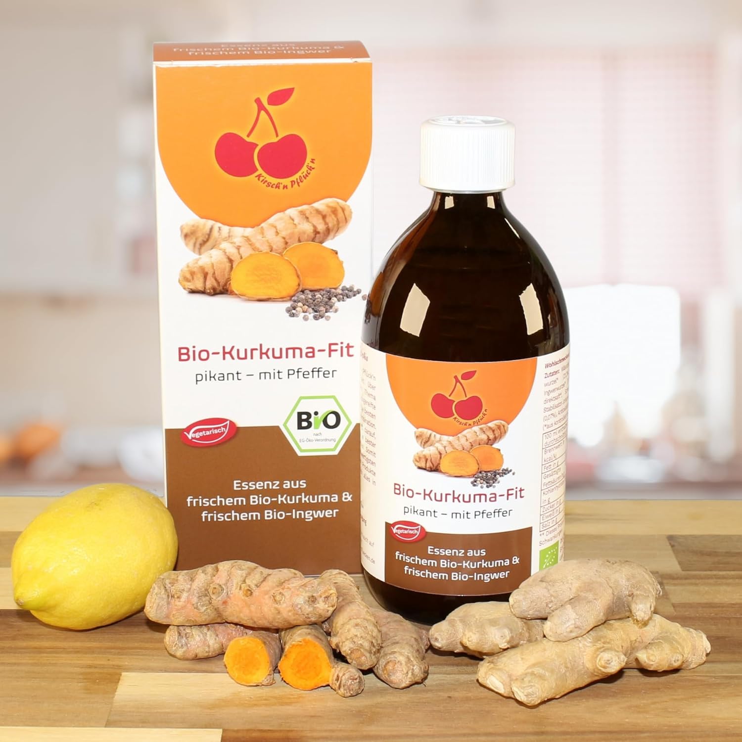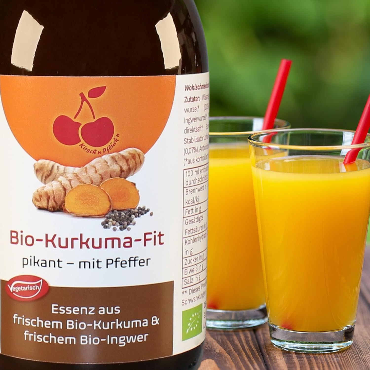 Biologische kurkuma-fit (pikant – met peper) | 500 ml | essentie van verse biologische kurkuma en biologische gember