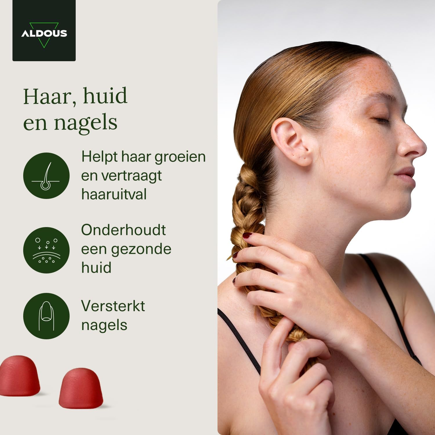 💅BIOTINE VOOR HAAR, HUID EN NAILEN – Onze biotine gummies ondersteunen de haargroei en de gezondheid van huid en nagels. Biotine versterkt broze, zwakke nagels en maakt ze dikker en steviger. Het is een effectieve nagelgroeier, die helpt om langere nagels te krijgen. Daarnaast zijn biotine en vitamine D en E essentieel voor het behoud van een gezonde huid. Ze beschermen de cellen tegen oxidatieve schade en zorgen voor een stralende, jeugdige huid.