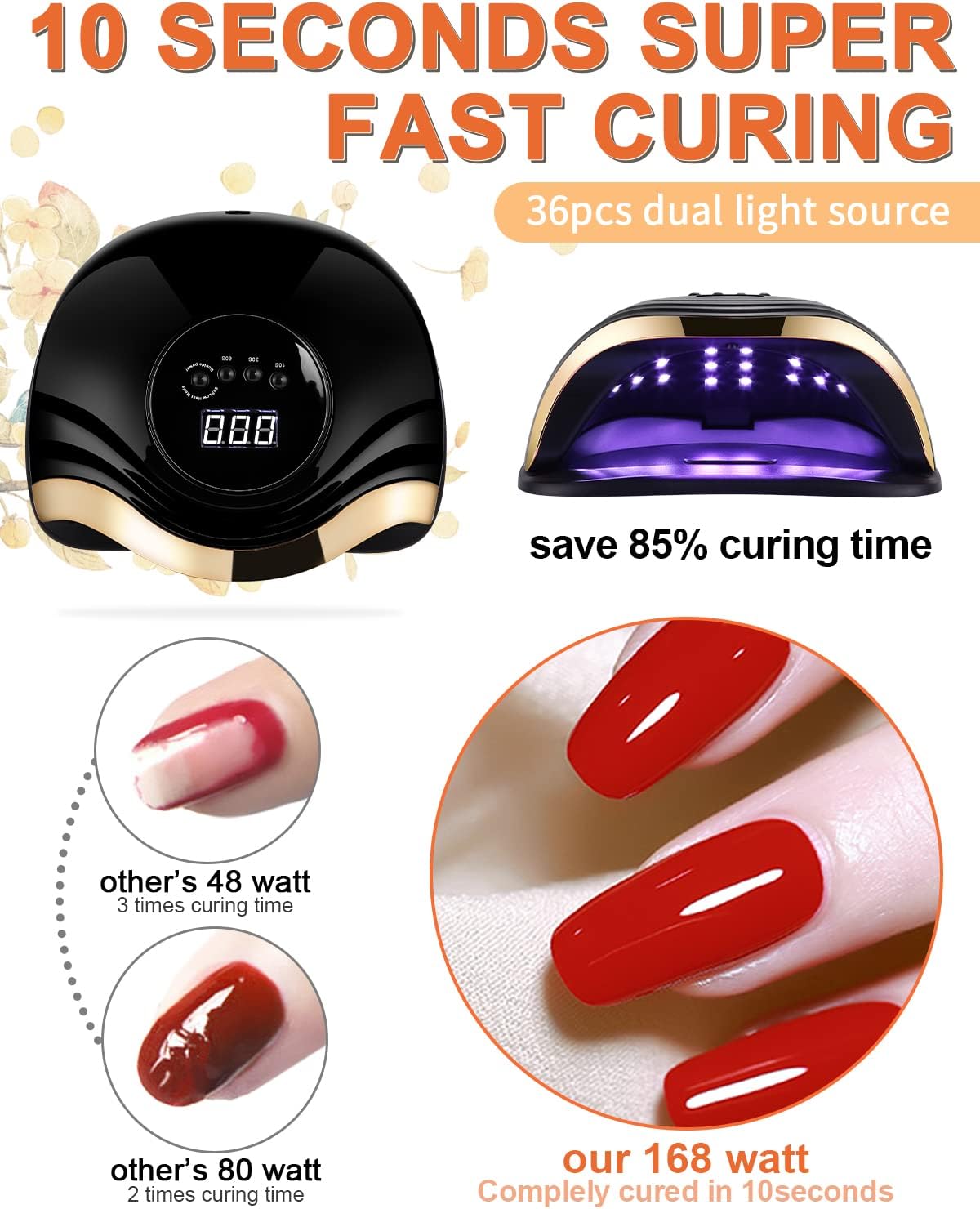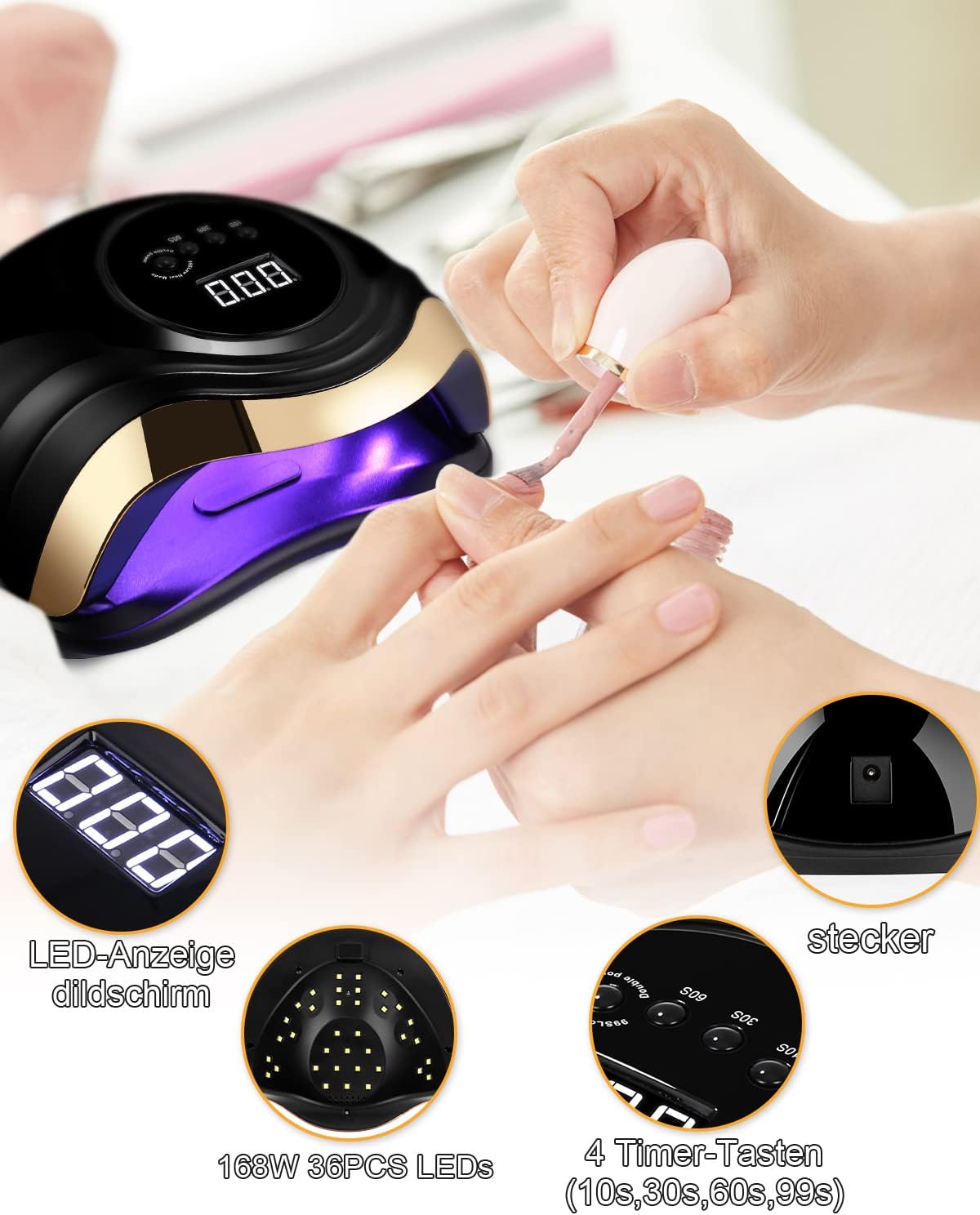Birshe 168W UV-lamp voor gelnagels, nageldrogerlamp UV LED-lamp voor nagels Nagellamp met 10/30/60/99s Timer LCD-display en slimme sensor voor vinger-/teennagels en voor alle gelnagellak, gelnagels