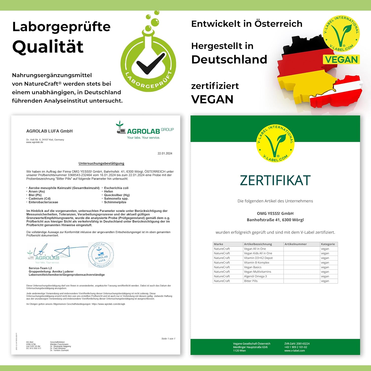 De in Oostenrijk ontwikkelde formule wordt volgens strenge kwaliteitsnormen volgens HACCP-normen in Duitsland geproduceerd. Elke batch wordt door een onafhankelijk Duits DIN EN ISO/IEC 17025 gecertificeerd laboratorium continu getest.