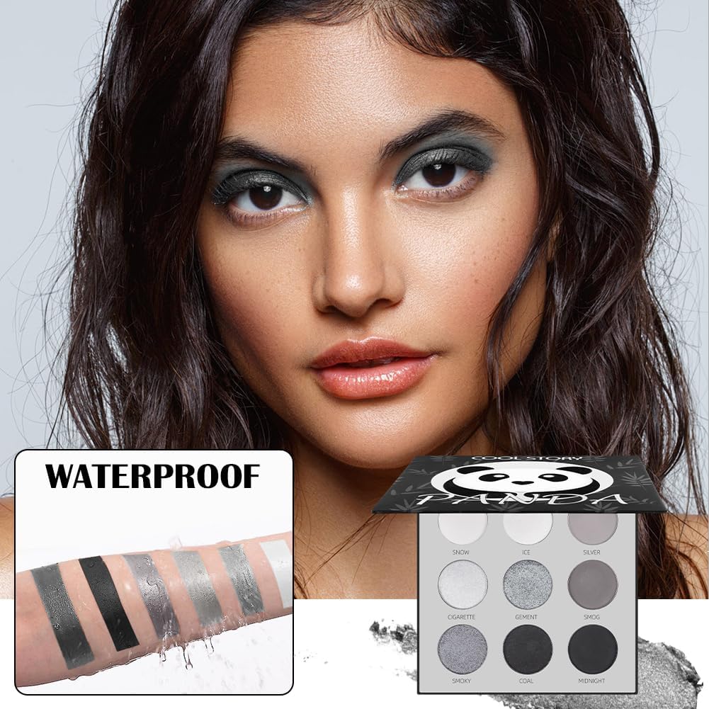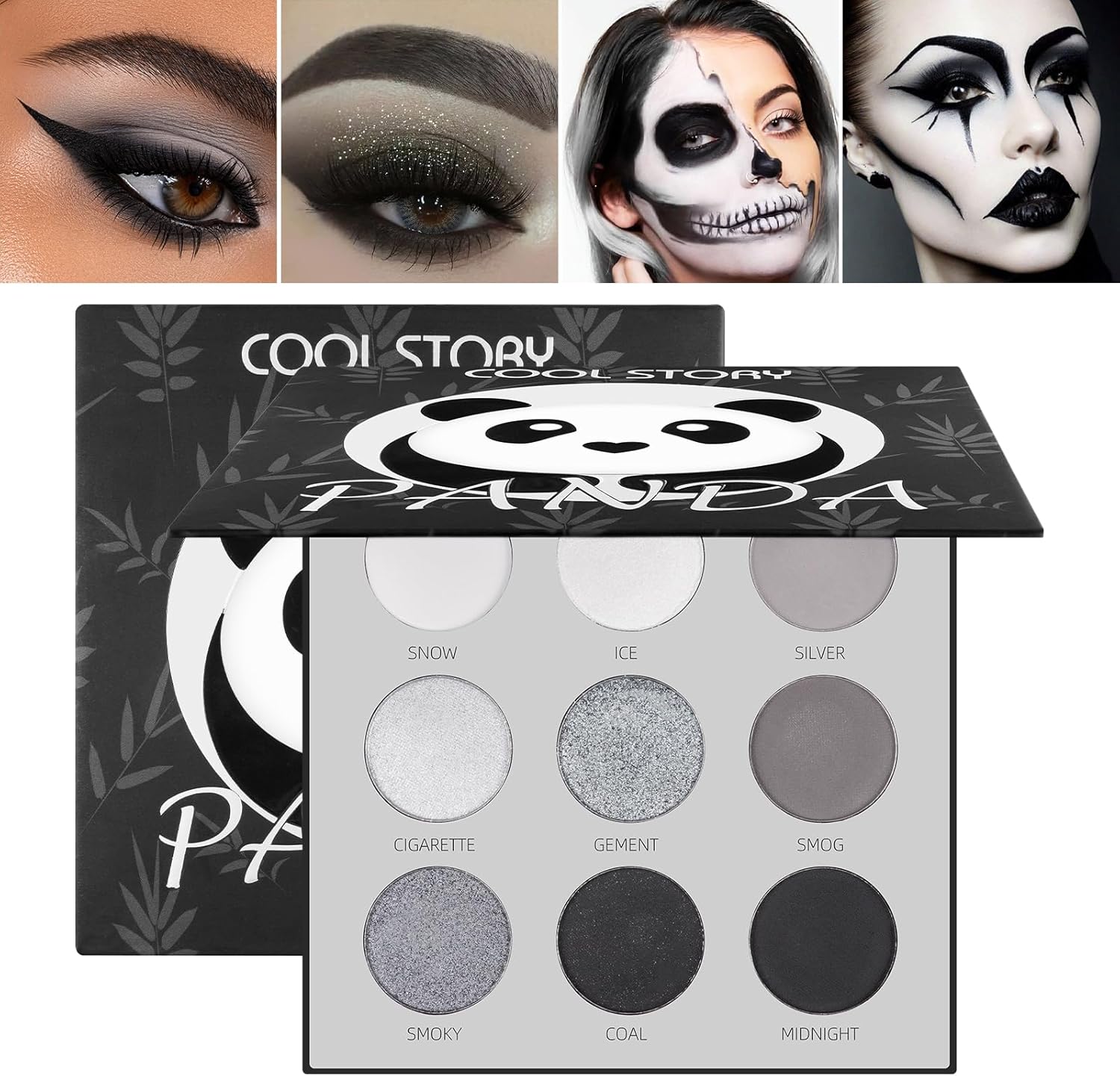 Black Smoky Oogschaduwpalet, met PANDA 9 kleuren, True Black Dark Grey, smokey oogschaduwpalet, mat en glinsterend, make-up-palet voor smokey, voor vakantie en Halloween