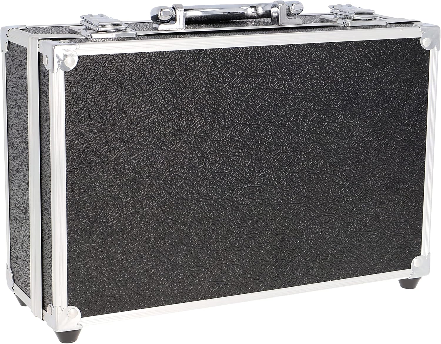 Compleet pakket: zodra je onze make-upcase opent, ontdek je een collectie van 48 oogschaduws, 2 blushers, 2 lippenstiften, 2 lipglosses, 4 glitterpotjes, wenkbrauwwax, 2 wenkbrauwpoeders, een dubbele oogschaduwborstel, 4 dubbele applicators, een dubbele oogpotloden, een dubbel lippotlood, 3 concealers, een wenkbrauwborstel/kam, een oogschaduwborstel en een blusherborstel.