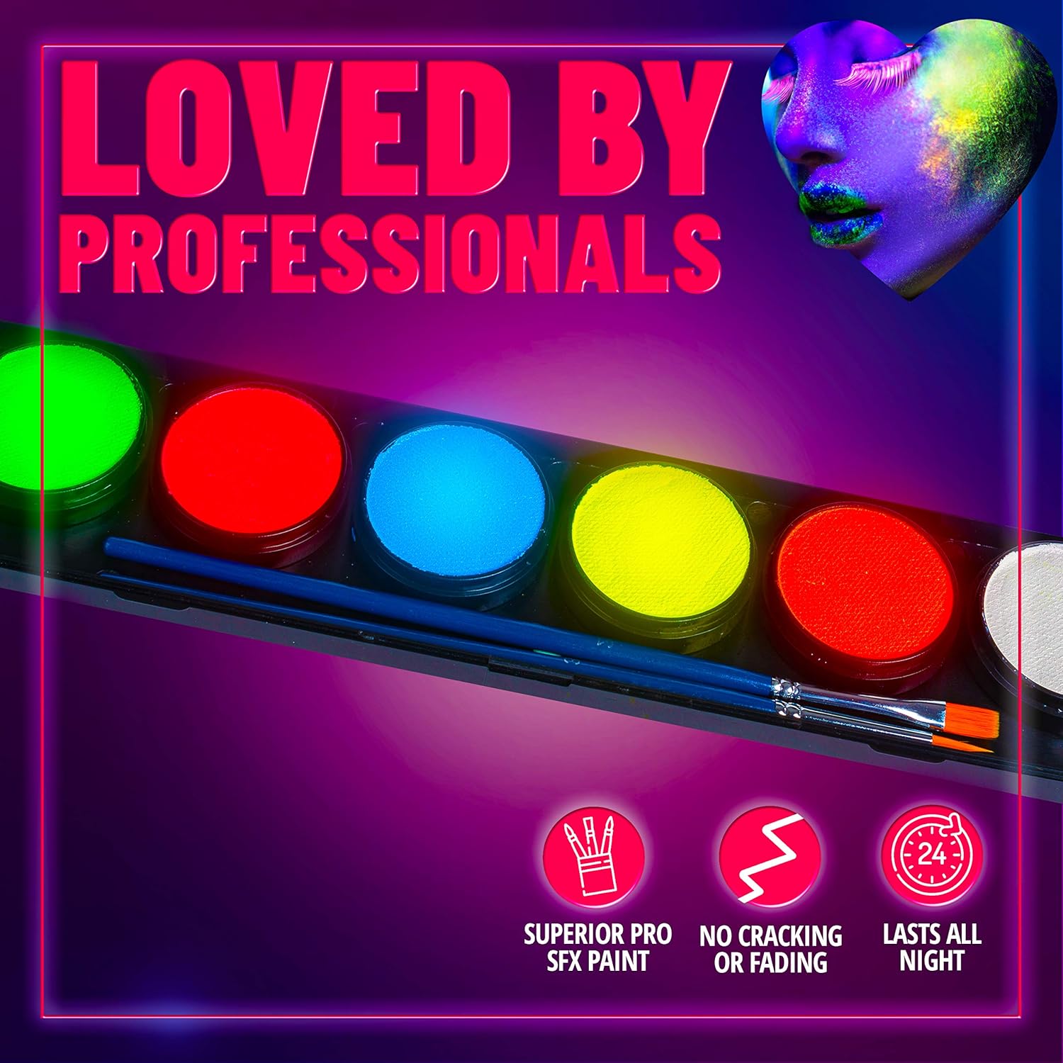 Blue Squid Neon Glow Body Paint Palette Pro – 6x10g Neon kleurenpalet, professionele UV Blacklight Body & Face Painting Set, SFX make-up verf benodigdheden, veilig voor de gevoelige huid
