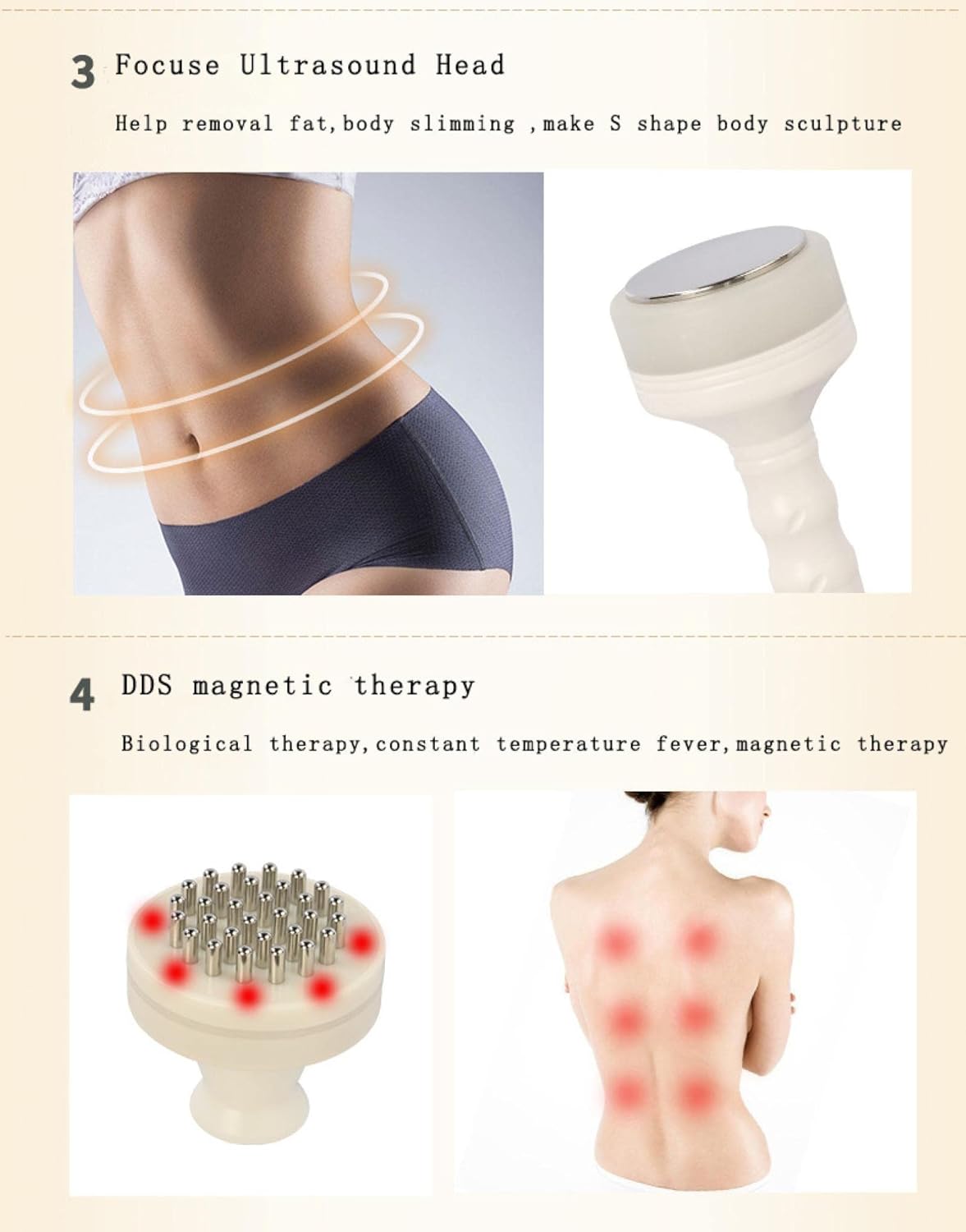 6 IN 1 MULTIFUNCTION MACHINE: Lose weight and remove fat,Dissolve fat Lymphatic drainage, firm skin, enhance skin elasticity Improve cellulite and shape Anti-aging and acid balance Cupping, relieve pain Anti-wrinkle, anti-acne,Whitening Improve face and body, anti-aging, rejuvenate.