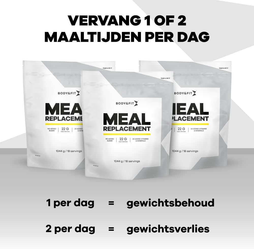 Body & Fit Low Calorie Meal Replacement, Maaltijdvervanger, Maaltijdshake, Whey- en Melkeiwit – Gewichtsverlies Shake – Aardbei – 1044 gram (18 shakes)