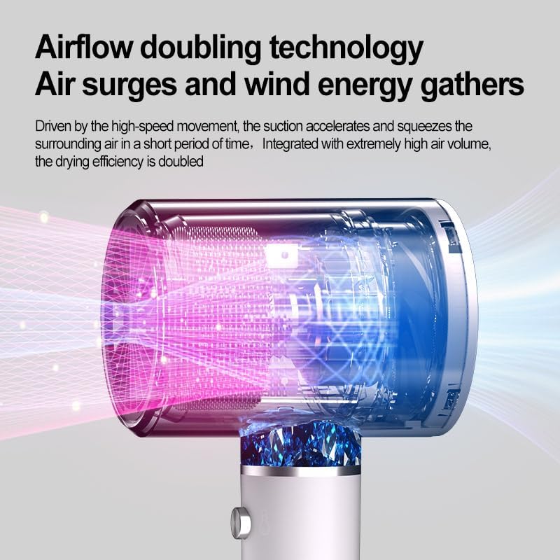 Krachtige motor en snel drogen: de professionele haardroger heeft een high-speed motor met een snelheid van maximaal 18.000 omw/min, biedt een sterke windkracht die snel kan drogen als je dikker haar in een korte tijd droogt. Een compact ontwerp maakt het lichter en draagbaarder