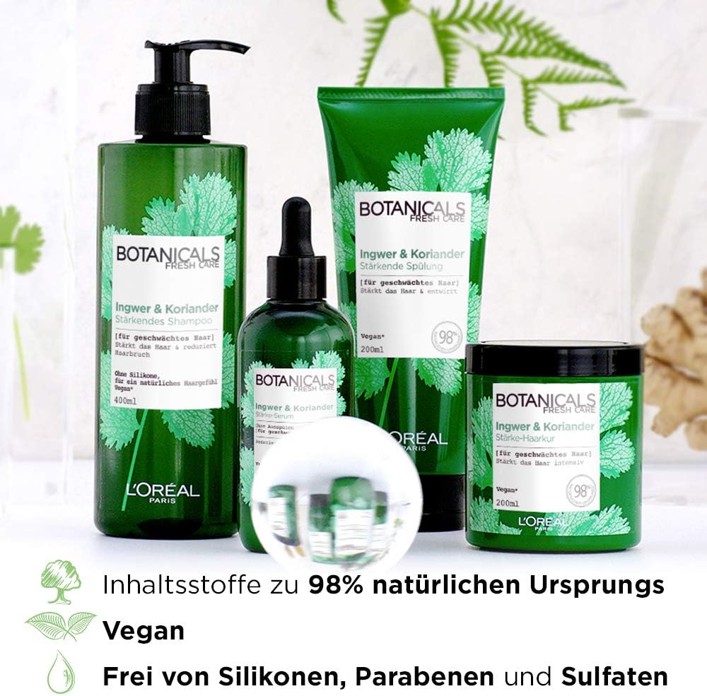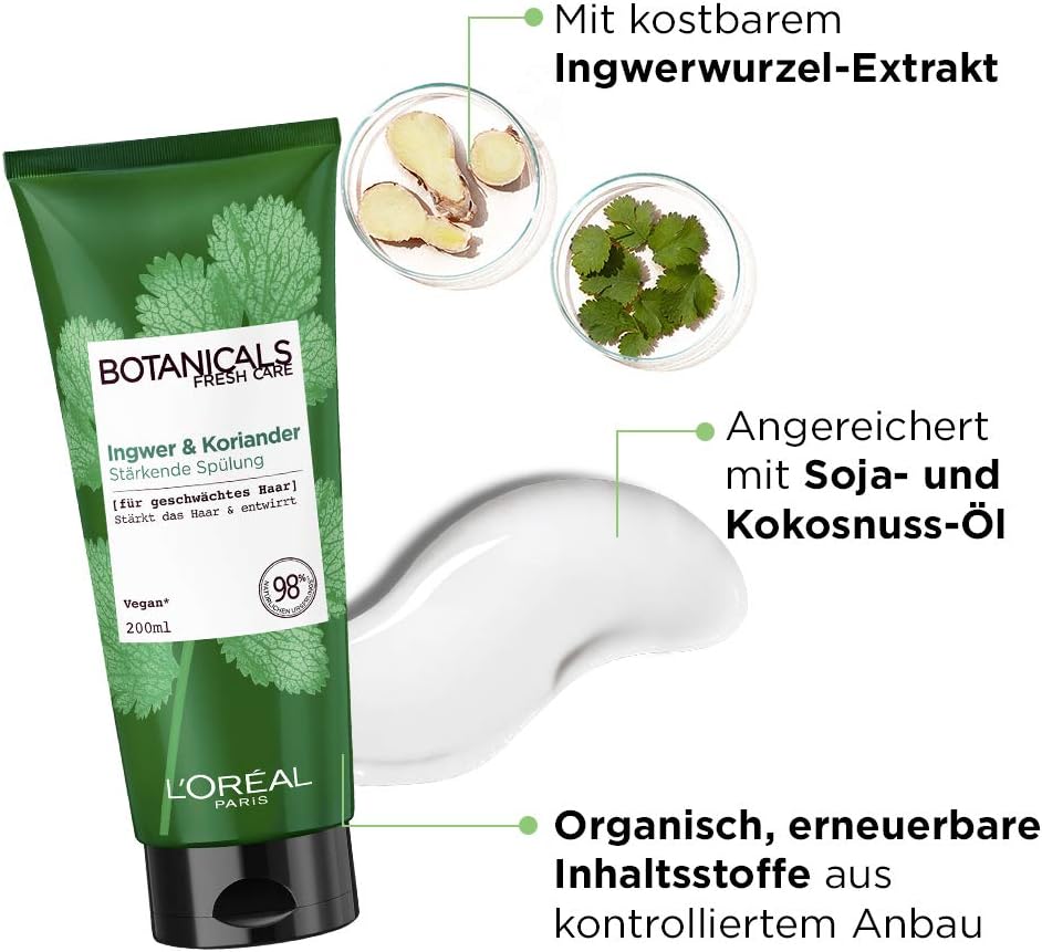 Inhoud: 1 x L’Oréal Paris Botanicals koriander zetmeelkuur spoelbalsem voor verzwakt haar, inhoud: 200 ml