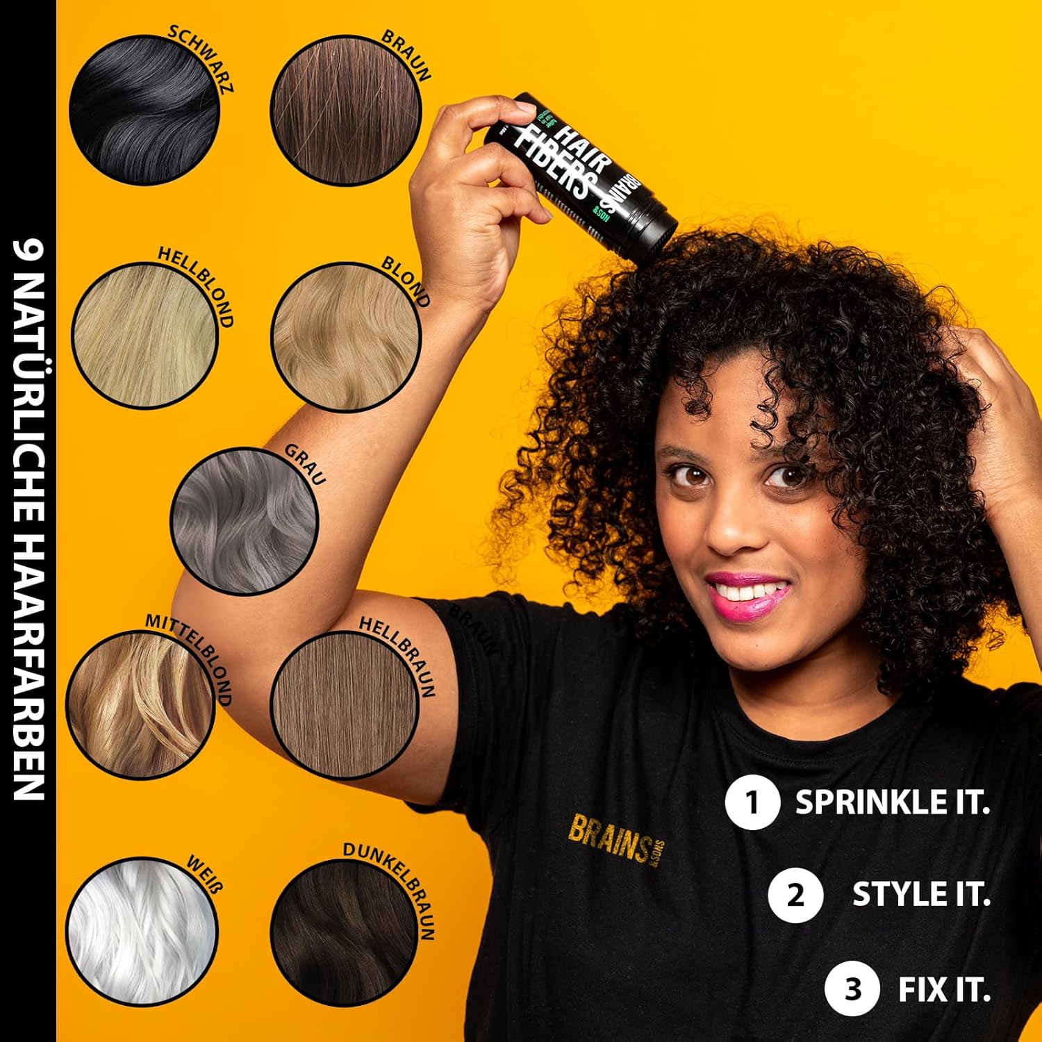 Haar is het natuurlijke juweel van iedere mens. Het kan individueel worden aangepast. Of het nu lang of kort, natuurlijk of geverfd is, haar drukt je persoonlijkheid uit. Haar wordt ook geassocieerd met jeugdigheid en vitaliteit. Niemand wil zijn haar verliezen. Helaas leiden verouderingsprocessen, ziekten of aanleg er echter toe dat veel mensen haarproblemen hebben. Het haar wordt dun, valt uit of er ontstaan kale plekken op het hoofd. Er zijn vele oplossingen. Van haarspoelingen en -capsules tot transplantaties, patiënten proberen alles om hun haarpracht te behouden of terug te krijgen. Maar helaas helpt er in sommige gevallen niets tegen haaruitval. Haarvezels combineren zich met je eigen haar. Nu is er een comfortabele oplossing die het haar in een handomdraai meer volume en volume geeft: Brains&son Hair Fibers. Dit haarpoeder is gemaakt van kleine katoenvezels. Daarom is het gebruik van haarpoeder volledig vrij van bijwerkingen of allergenen. De vezels van het losse haarpoeder zijn elektrostatisch geladen en hechten zich aan het echte haar. De kale plekken zijn onmiddellijk bedekt en het haar krijgt volume. Zelfs de wortels van geverfd haar kunnen bedekt worden met haarpoeder. Het haar hoeft minder vaak opnieuw te worden geverfd en wordt gespaard